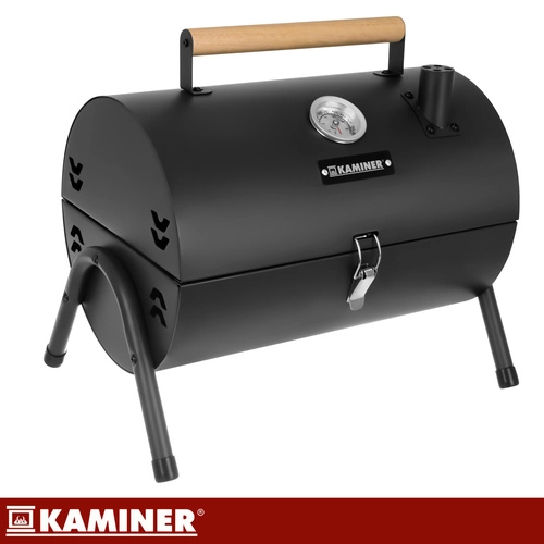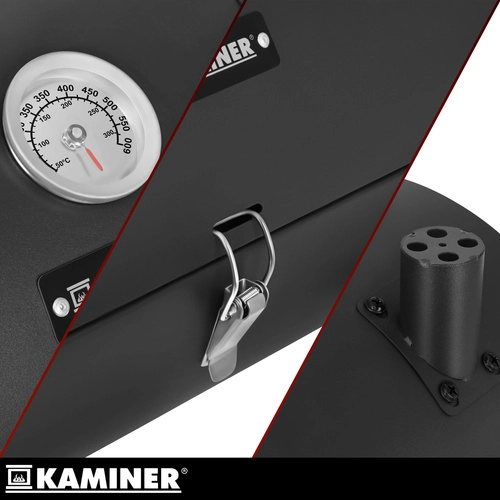 Uživajte v žaru kjer koli – na vrtu, v počitniški hišici ali na pikniku. Prenosni žar KAMINER s pokrovom in termometrom vam omogoča natančno spremljanje temperature brez nenehnega dvigovanja pokrova. Dve ločeni rešetki povečata delovno površino in omogočata razdelitev con za različne vrste živil. Dve posodici za oglje enakomerno porazdelita žar in olajšata čiščenje kurišča.