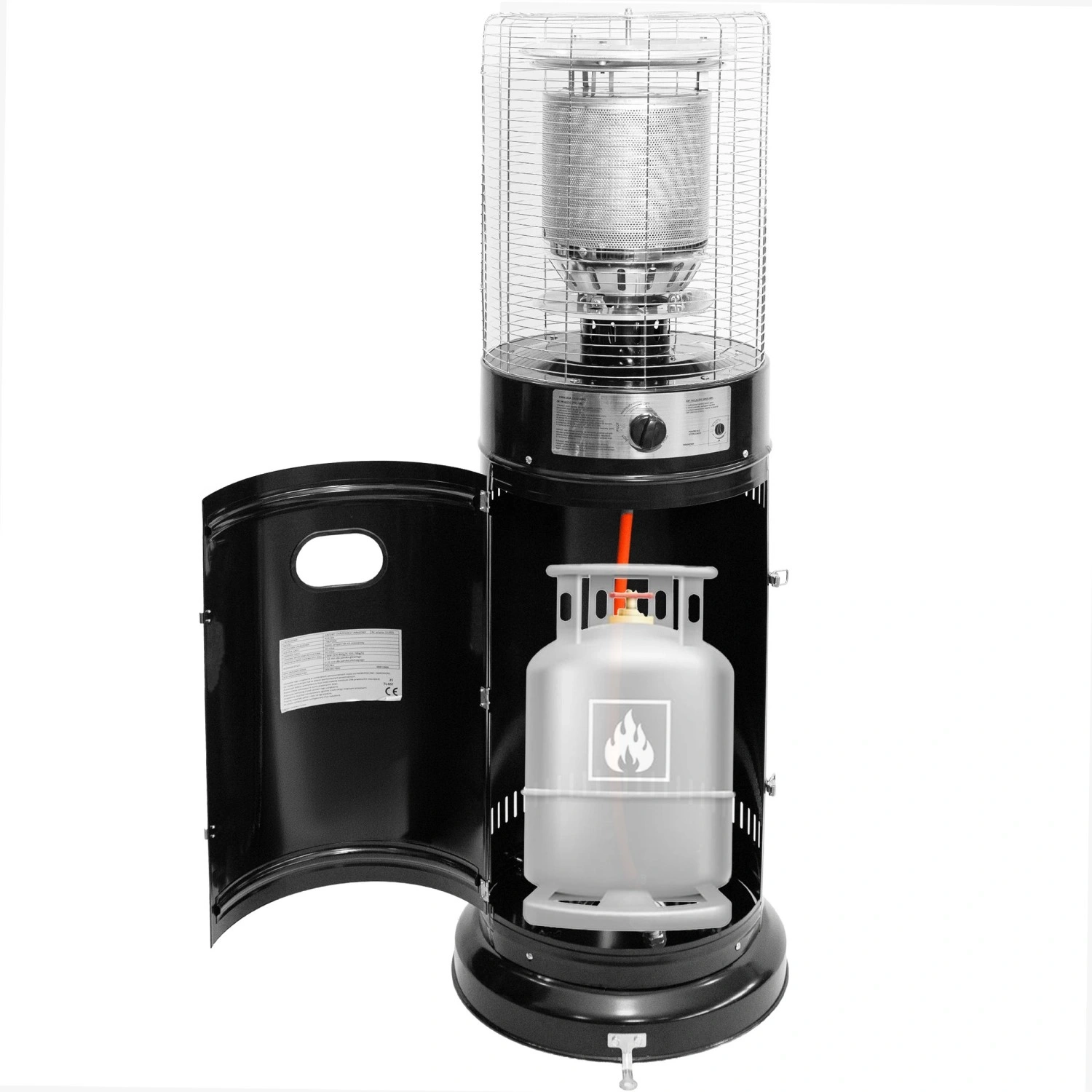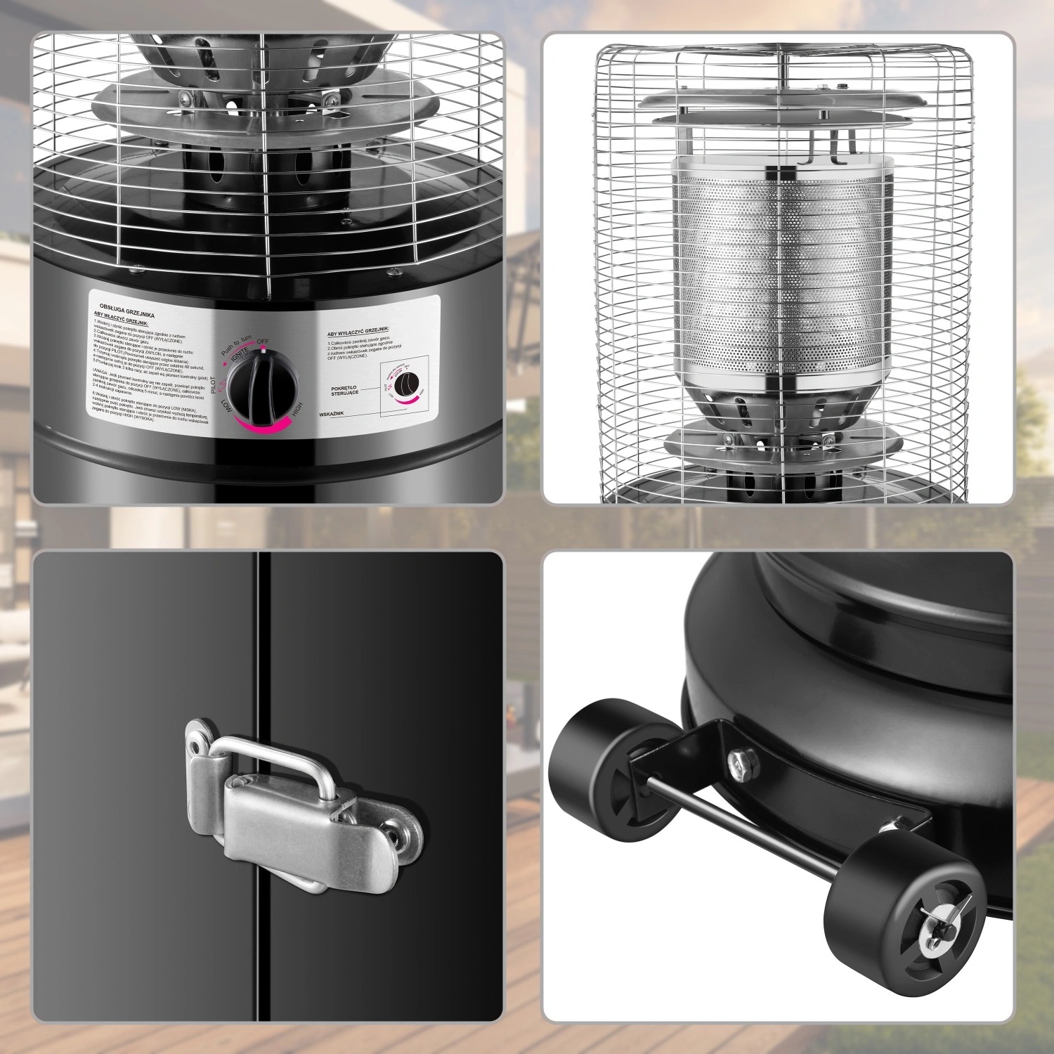 Ta plinski terasni grelec bo vaš vrt ali balkon spremenil v udobno zatočišče tudi v hladnejšem vremenu. Sodobna cilindrična zasnova s kovinskim ohišjem in zaščitnim steklom se elegantno poda tako zasebnim kot komercialnim prostorom. Zahvaljujoč učinkovitemu sevalnemu ogrevanju nudi prijetno toplotno udobje med druženjem z družino in gosti.