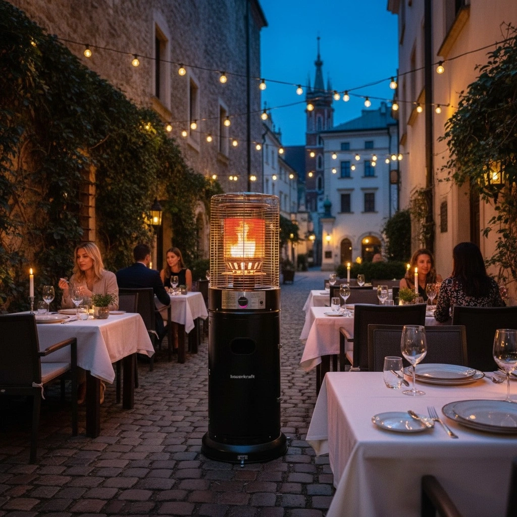 Uživajte v toploti na terasi vse leto s kompaktnih 11 kW plinskim grelcem. Stabilna jeklena konstrukcija, tekoče uravnavanje temperature, piezo vžig in kolesca za enostavno premikanje ga naredijo idealno izbiro za terase, vrtove in gostinske dvorišča. Priloženi so tlačni regulator, plinska cev s sponkami in vodoodporna zaščitna prevleka.