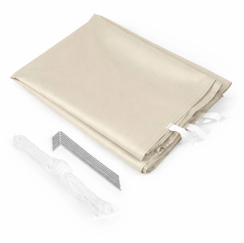 Trpežna tkanina 420D s PVC prevleko odbija vodo in ščiti pred soncem. Primerna za vrtno rabo in sezonsko komercialno uporabo.