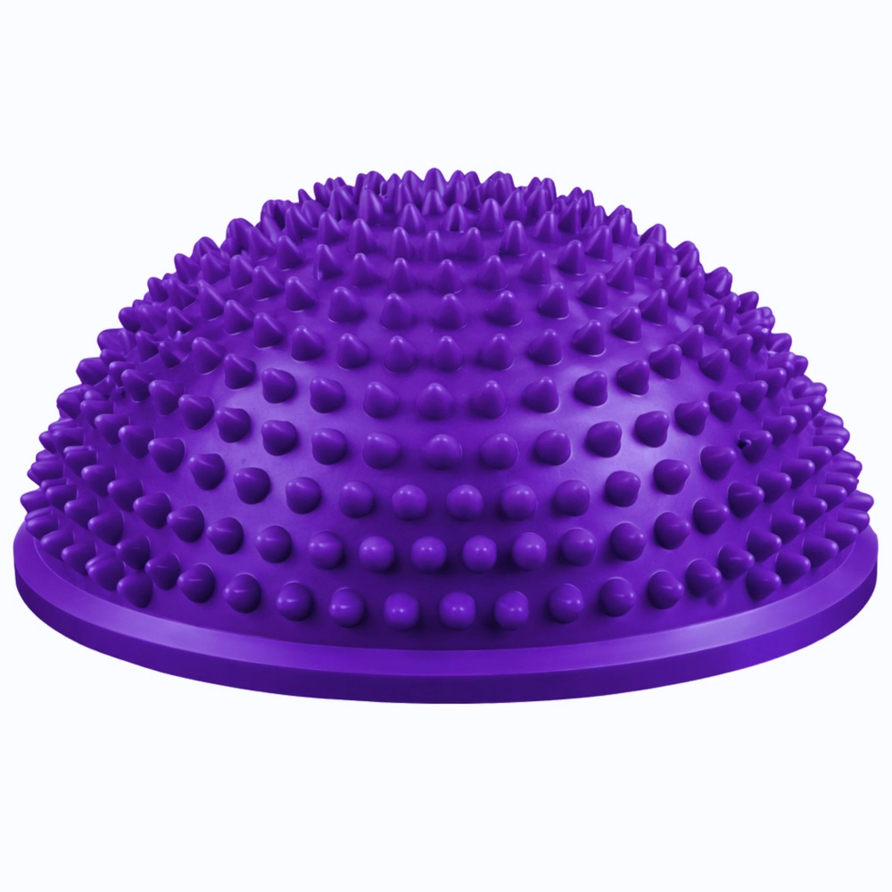 Vijolična polkrogla s premerom 16 cm je vsestranski pripomoček za trening ravnotežja, stabilizacijo trupa in senzomotorično stimulacijo. Stožčaste izbokline nežno masirajo stopala, spodbujajo prekrvavitev in aktivirajo mišice stopalnega loka. Odlična je za otroke in odrasle – za domače okolje, vrtce, šole in fizioterapevtske ustanove.