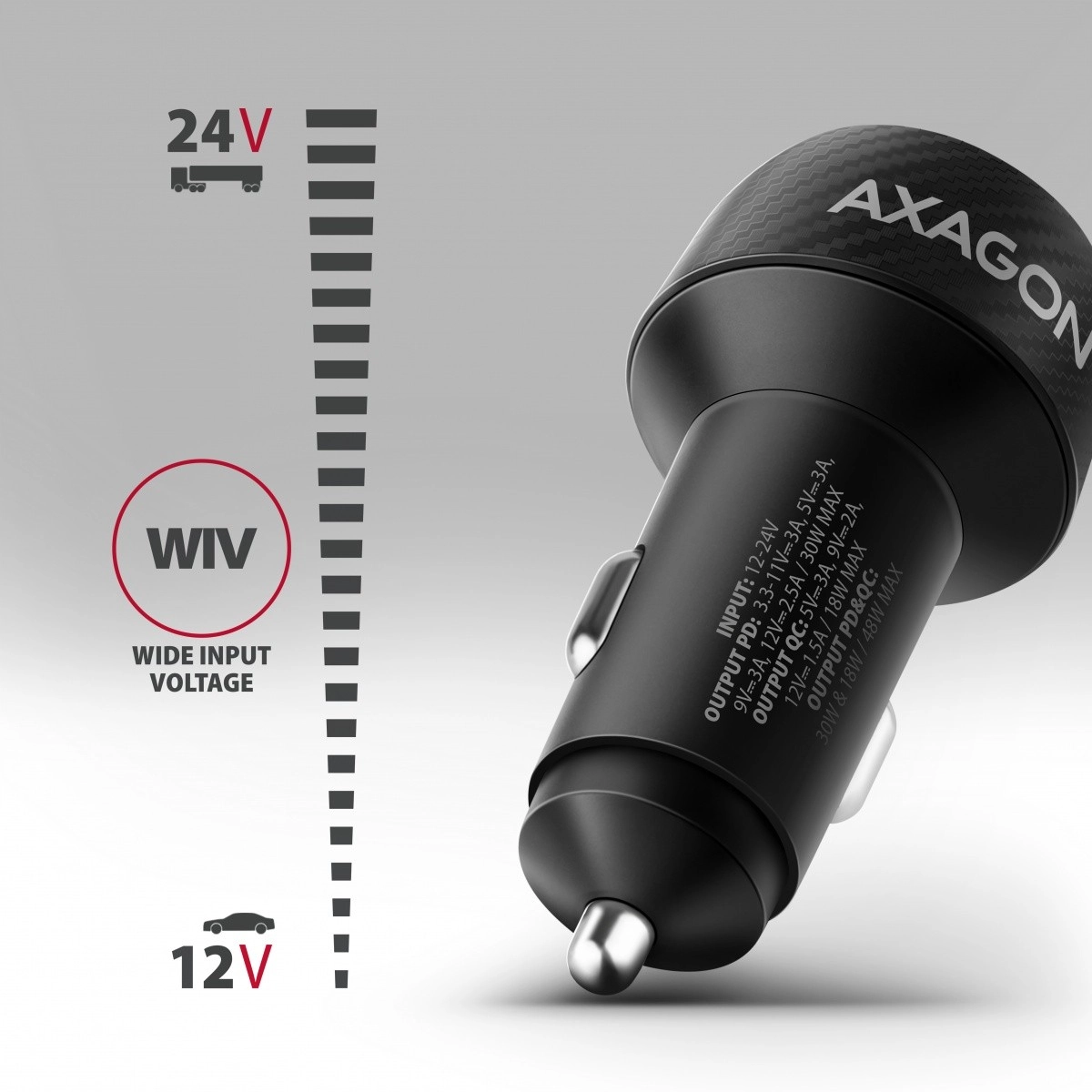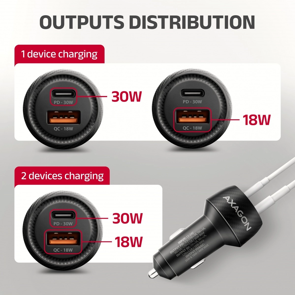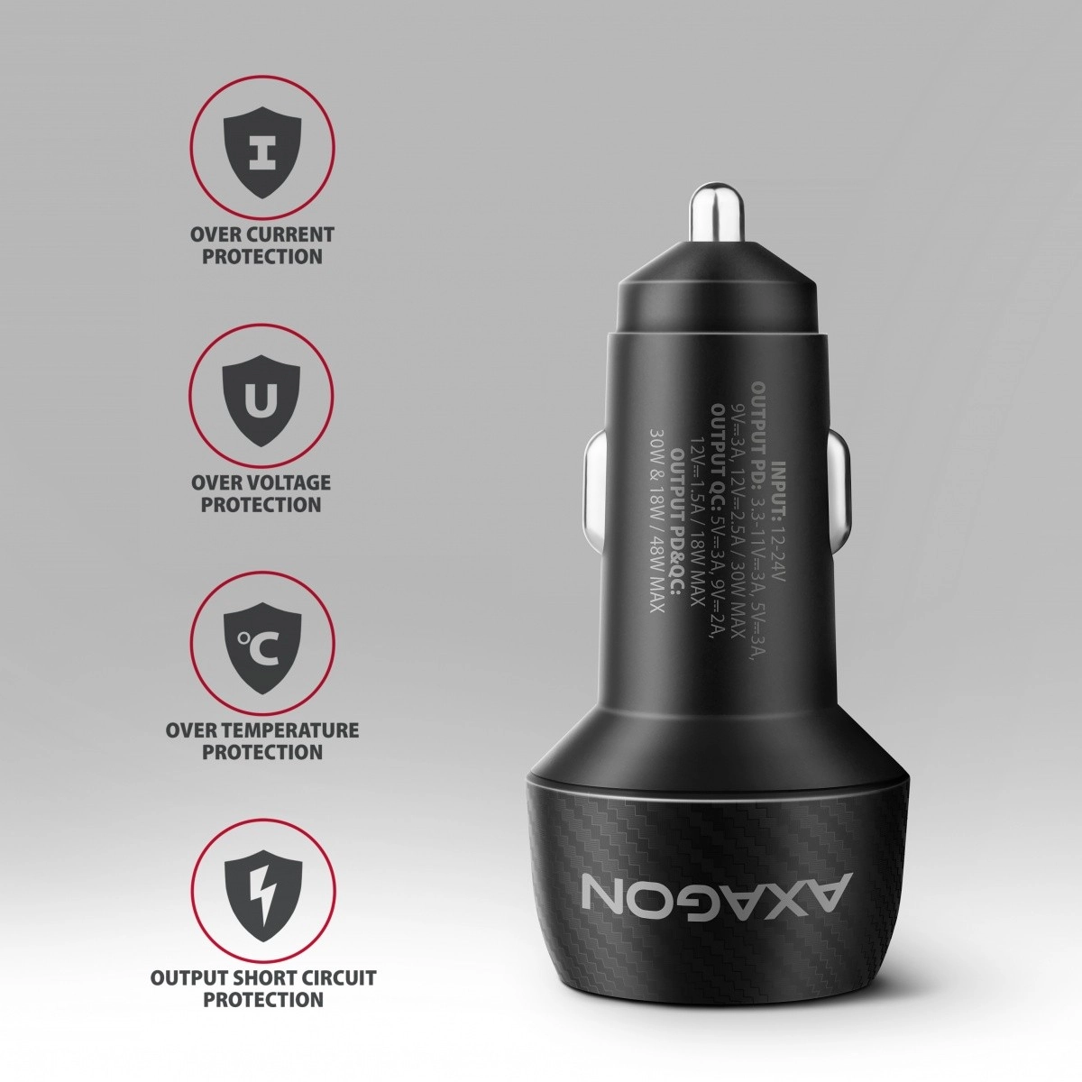 Uživajte hitro in zanesljivo polnjenje na poti. Avtopolnilec AXAGON PWC-PQ48 združuje vrata USB‑C PD 3.0 in USB‑A QC 4+ s skupno močjo 48 W, zato brez težav polni sodobne pametne telefone, tablice in tudi manjše prenosnike, kot je MacBook Air. Elegantno kompaktno ohišje z nizkim profilom se odlično prilega 12/24 V vtičnici, diskretna LED‑dioda pa označuje delovanje.