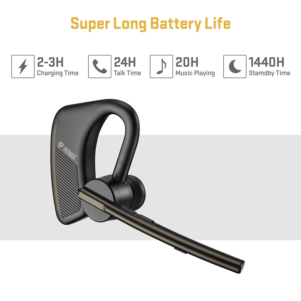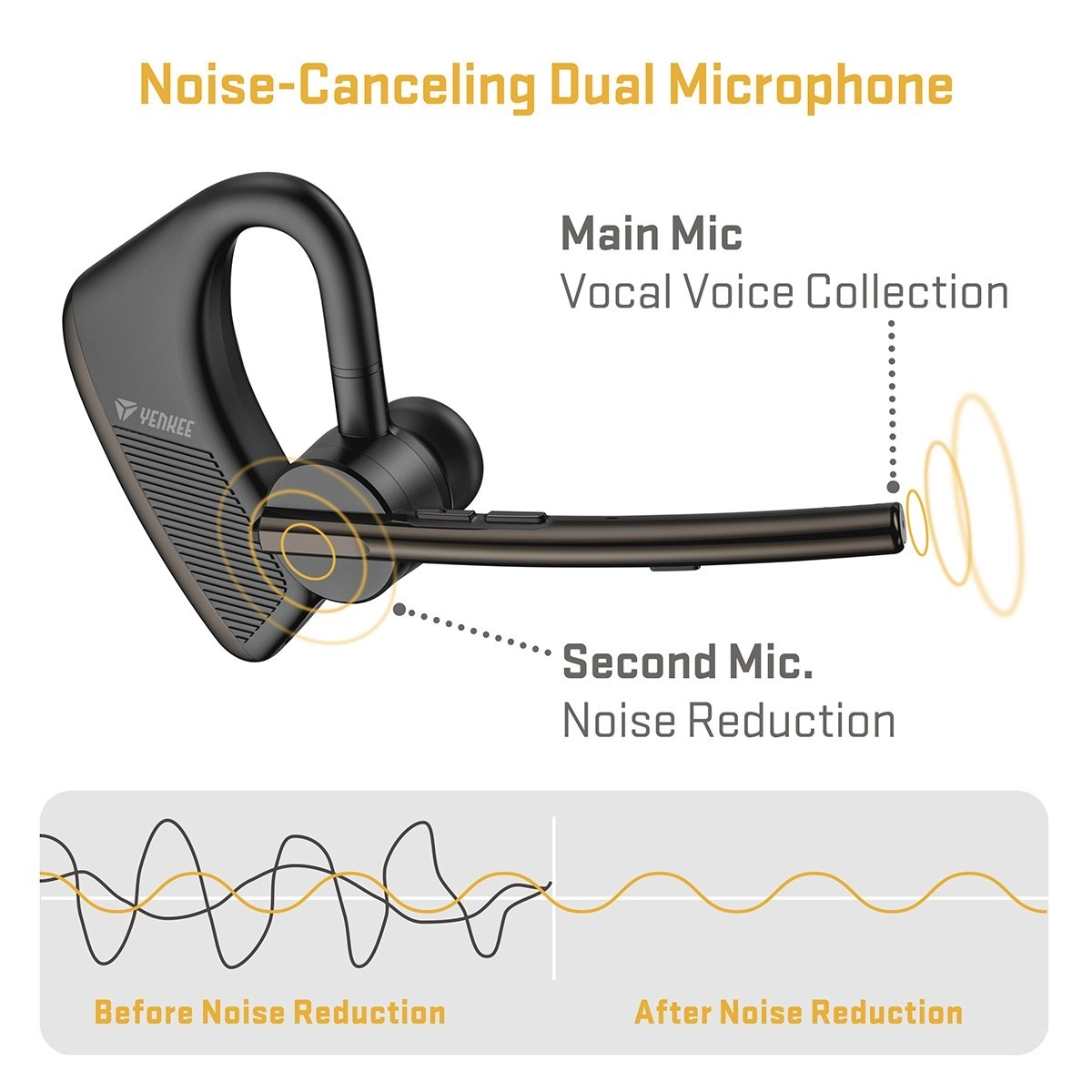 Vrtljiv mikrofon z razponom 270°/180° omogoča nošenje na desnem ali levem ušesu ter natančno nastavitev za optimalno zajemanje glasu. Ergonomski ušesni kavelj, tanka in podaljšana mikrofonska ročica ter zelo majhna teža zagotavljajo udobje tudi pri celodnevni uporabi. Večfunkcijski gumbi omogočajo hitro utišanje, prilagajanje glasnosti, upravljanje klicev, glasbe in aktivacijo glasovnih asistentov.