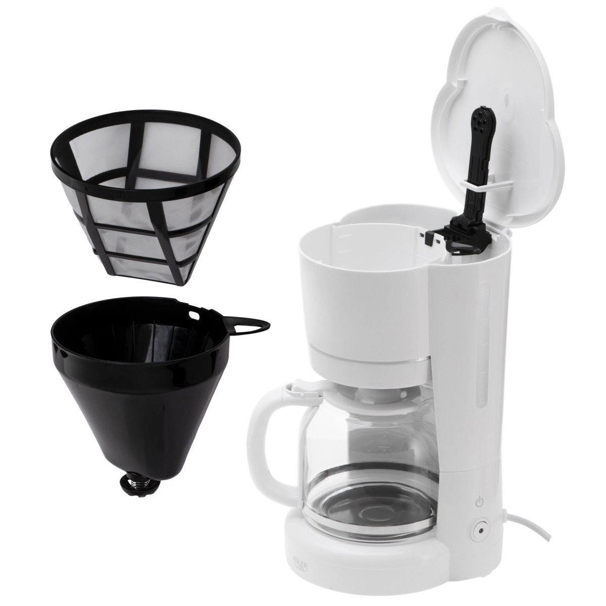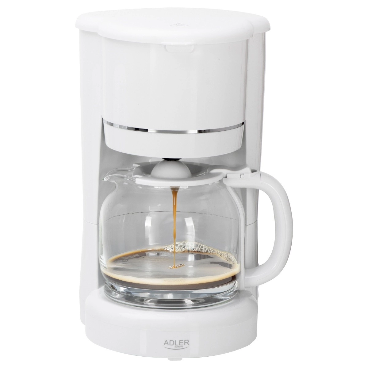 Uživajte v vonju sveže pripravljene kave s prekapnim kavnim aparatom ADLER AD 4383 v elegantni beli barvi. Ponuja prostornino 1,5 l za do 12 skodelic, enakomerno prekapnje za poln okus, stekleno vrč s ergonomskim ročajem, funkcijo proti kapljanju, kazalnik nivoja vode in ogrevno ploščo z ohranjanjem temperature. Zahvaljujoč odstranljivemu najlonskemu filtru prihranite pri papirnatih filtrih, samodejni izklop pa poskrbi za varnost in varčevanje z energijo.