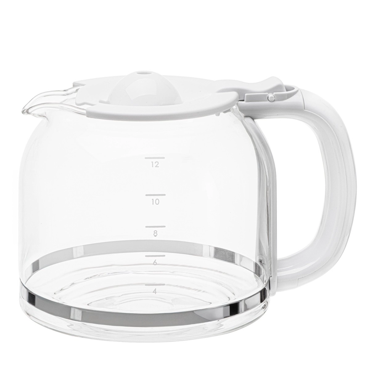 Velik steklen vrč z merilnimi oznakami pripravi kavo za vso družino ali pisarno in jo ohranja toplo na ogrevni plošči.