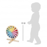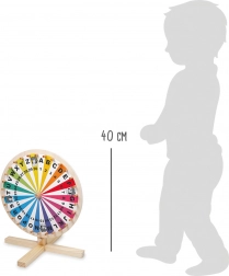 Robustna lesena konstrukcija s stabilnim stojalom zagotavlja gladko in varno vrtenje. Kolo je idealno za šole, podaljšano bivanje, otroške krožke in domačo uporabo, kjer razvija fino motoriko, besedišče, računanje in zmožnost koncentracije.