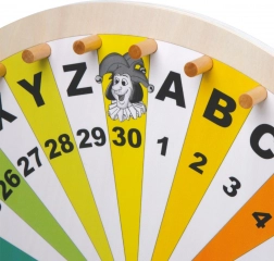Leseno kolo sreče small foot spremeni vsako aktivnost v napeto igro. Zaradi segmentov s črkami A–Z, številkami 1–30 in štirimi jokerji je odlična izbira za besedne igre, loterije, izobraževalne aktivnosti in družinska tekmovanja. Barvna izvedba podpira orientacijo in ohranja pozornost otrok.