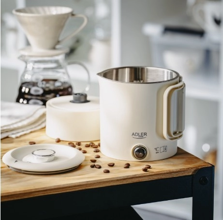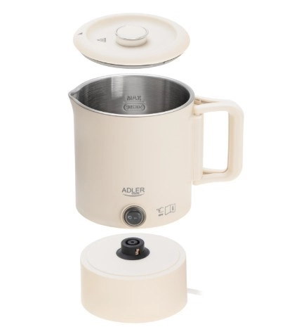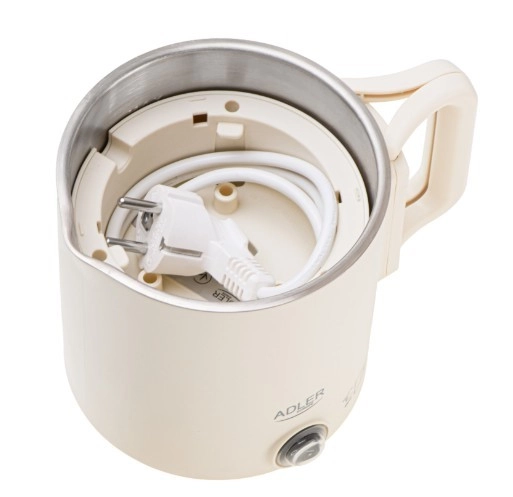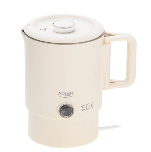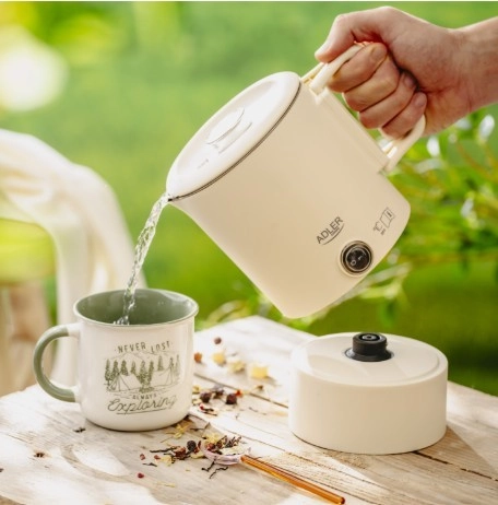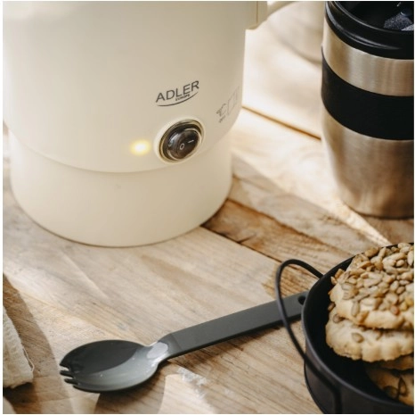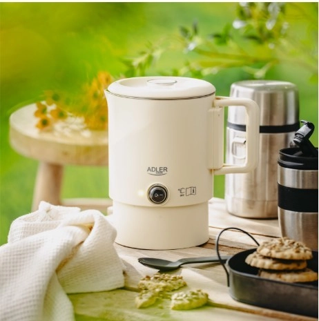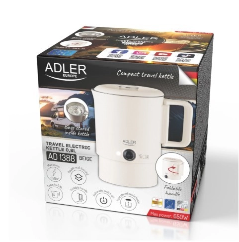 Kompaktni potovalni grelnik ADLER AD 1388 s prostornino 0,8 l je idealen za počitnice, službena potovanja in kampiranje. Zahvaljujoč zložljivemu ročaju in možnosti shranjevanja podstavka v notranjosti grelnika zavzame minimum prostora, hkrati pa ponuja hitro vrenje vode, varne dvojne stene in samodejni izklop.