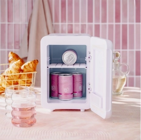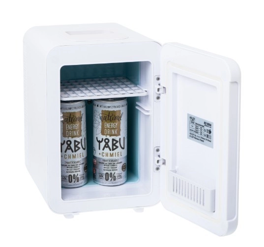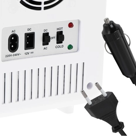 Notranjost s prostornino 4 l je premišljena za vsakodnevne potrebe: vanjo se prilegajo pločevinke, male steklenice, lončki, doze ter kozmetika ali otroška hrana. Odstranljiva polička in košarica v vratih olajšata organizacijo. V paketu najdete napajanje AC 220–240 V in DC 12 V za avto – idealno za izlete, počitnice in kampiranje.