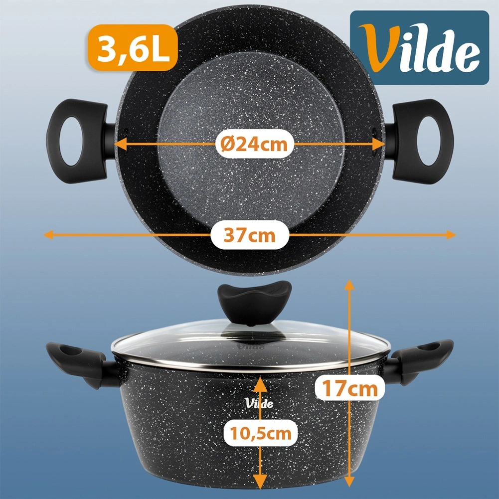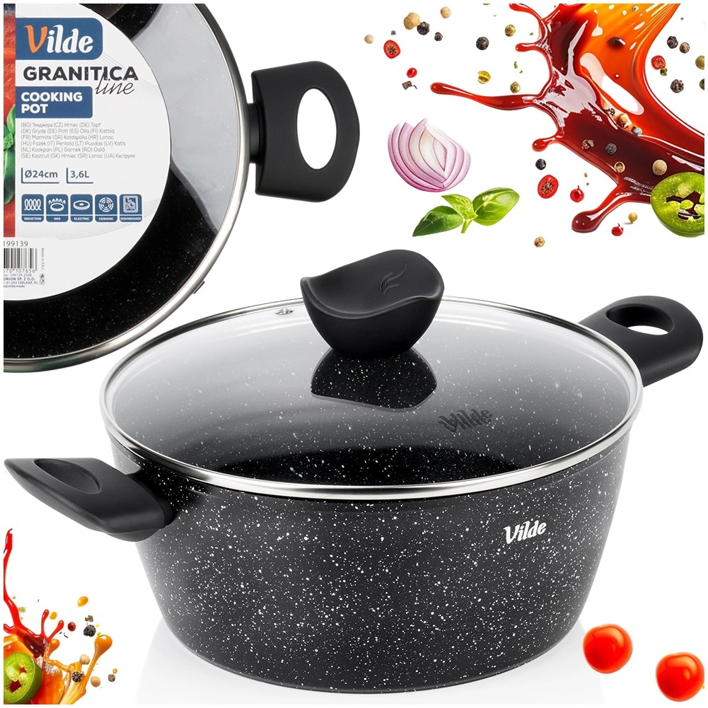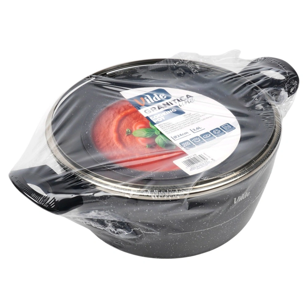 Praktičen lonec s prostornino 3,6 l iz serije VILDE GRANITICA združuje vzdržljiv aluminijast ulitek z neprijemljivo granitno površino za zdravo kuhanje z minimalno količino maščobe. Priložen je steklen pokrov z odprtino za izpust pare in udobni ročaji Soft Touch. Primeren za indukcijo, plin, elektriko in keramiko ter se lahko pomiva v pomivalnem stroju.