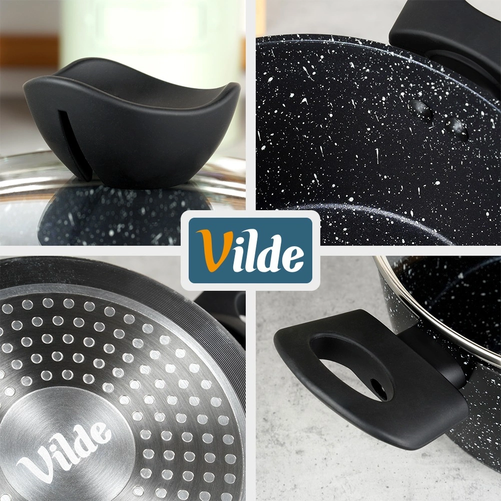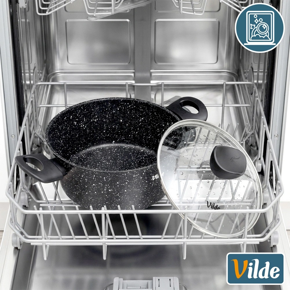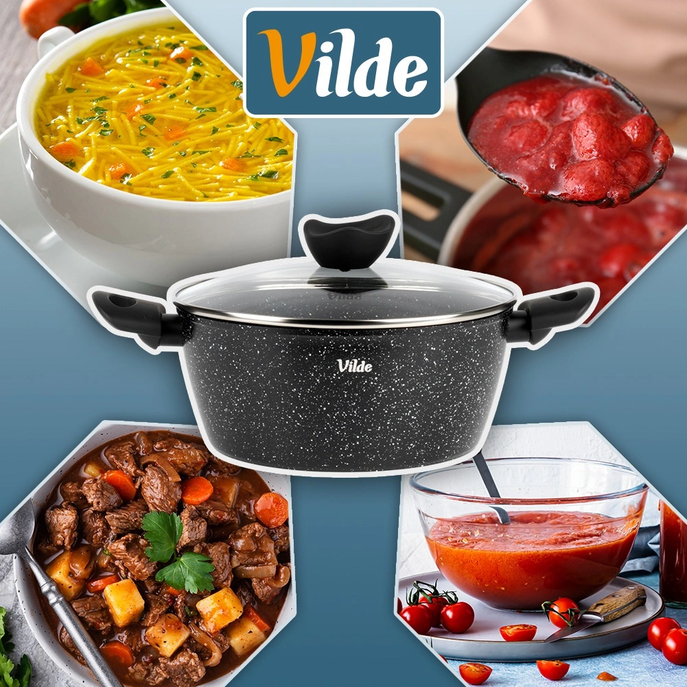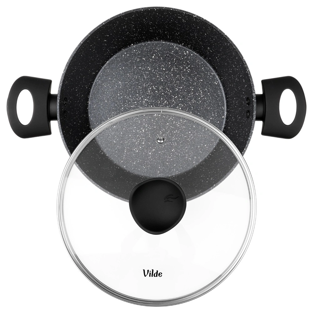 Praktičen lonec s prostornino 3,6 l iz serije VILDE GRANITICA združuje vzdržljiv aluminijast ulitek z neprijemljivo granitno površino za zdravo kuhanje z minimalno količino maščobe. Priložen je steklen pokrov z odprtino za izpust pare in udobni ročaji Soft Touch. Primeren za indukcijo, plin, elektriko in keramiko ter se lahko pomiva v pomivalnem stroju.