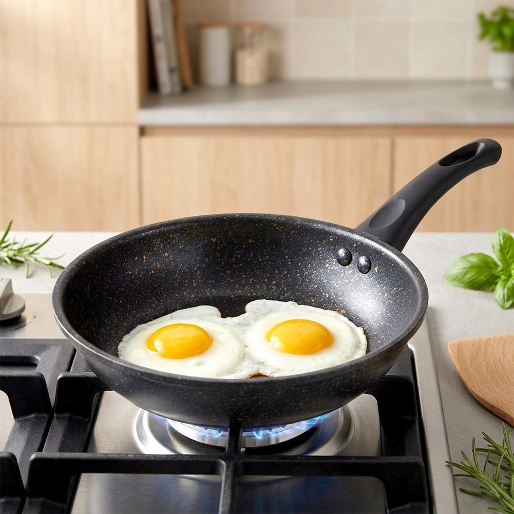 Posebna granitna plast zmanjšuje prijemanje hrane in omogoča cvrtje z minimalno količino maščobe. Hrana se zlahka sprosti, ponev pa se hitro čisti – tudi v pomivalnem stroju.