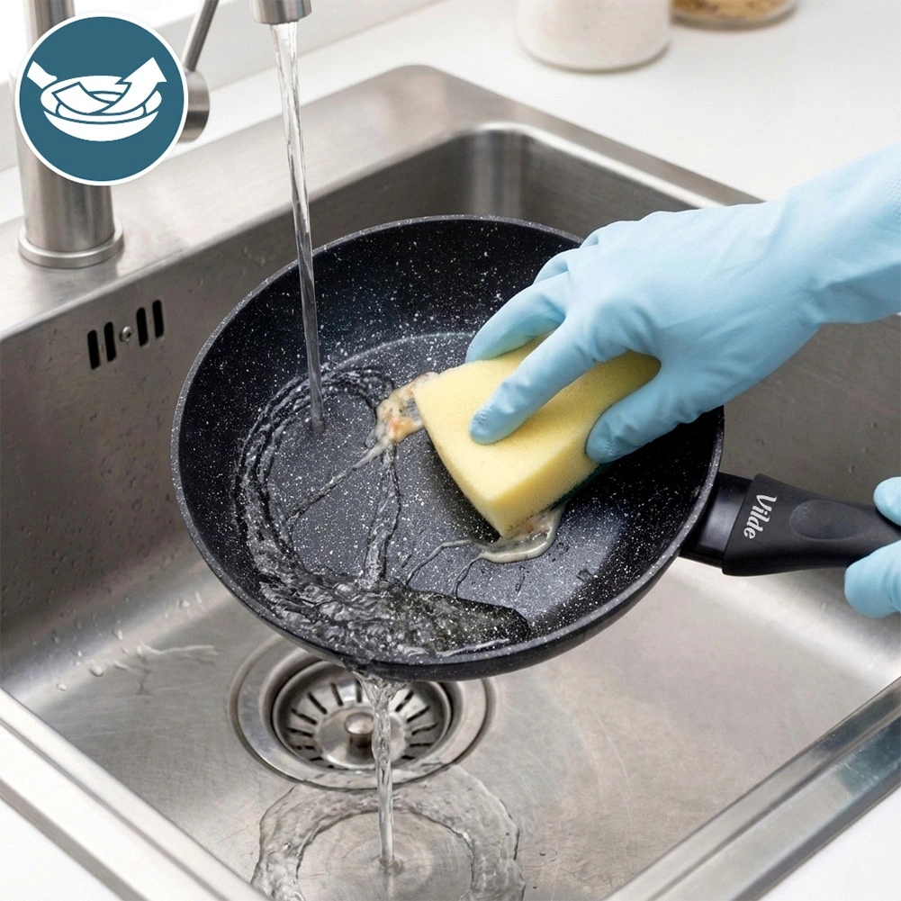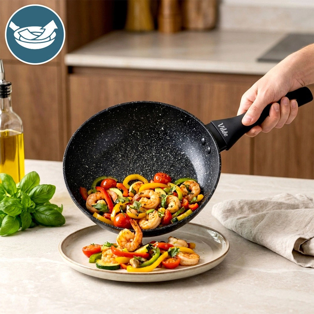Ergonomski, na toploto odporen ročaj zagotavlja zanesljiv oprijem. Po kuhanju ponev preprosto umijete, primerna je tudi za pomivalni stroj.