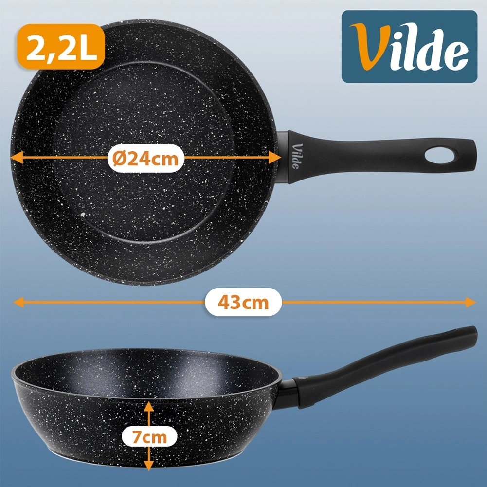 - Praktične mere: premer 24 cm, višina ponve 6,8 cm, dolžina 43 cm, prostornina 2,2 l