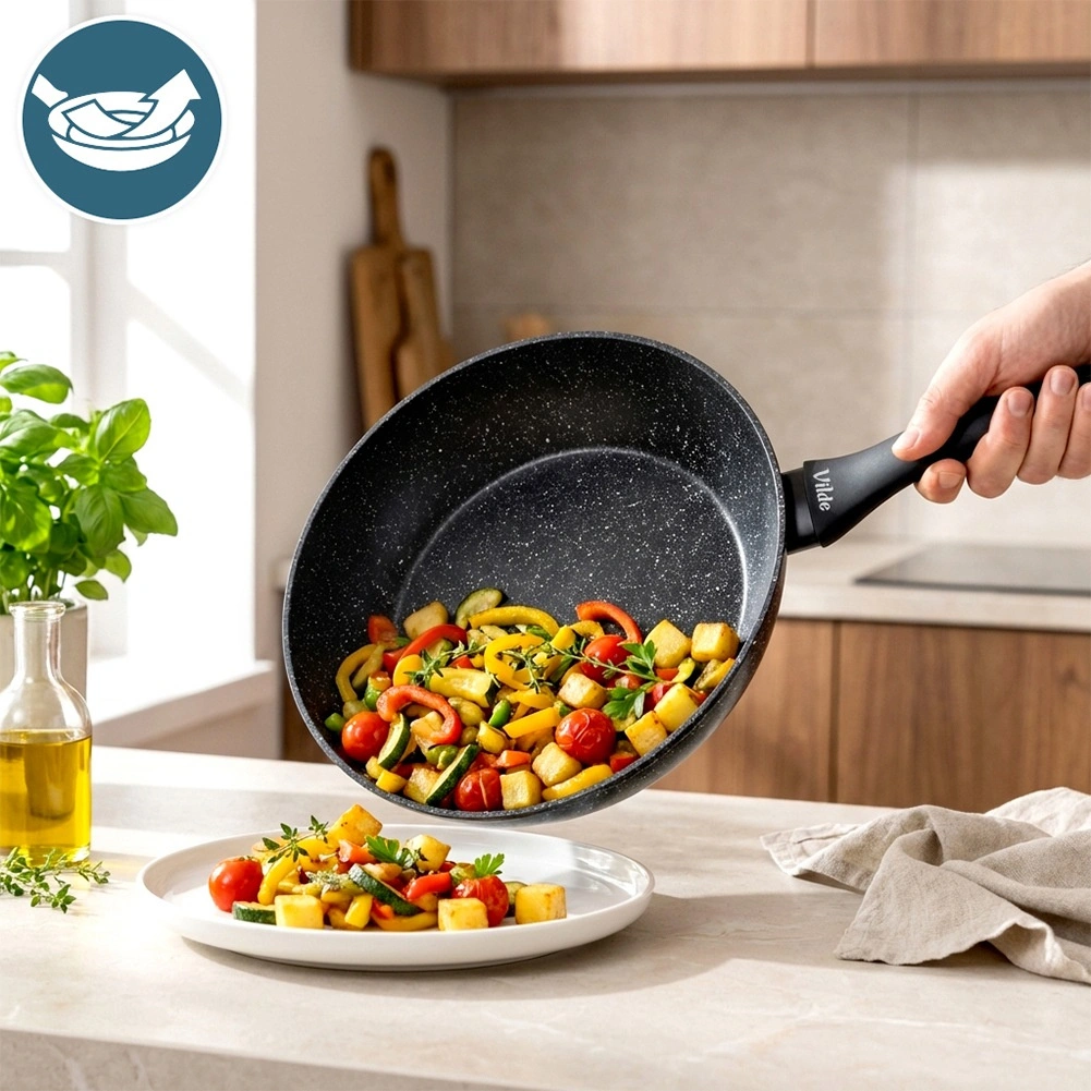 Odkrijte vsestransko ponev za pečenje in dušenje s prostornino 3,5 l, ki zaradi večslojne zasnove in neprijemljive granitne plasti omogoča enostavno sproščanje jedi in preprosto čiščenje. Idealna za meso, zelenjavo in hitro pogrevanje jedi.