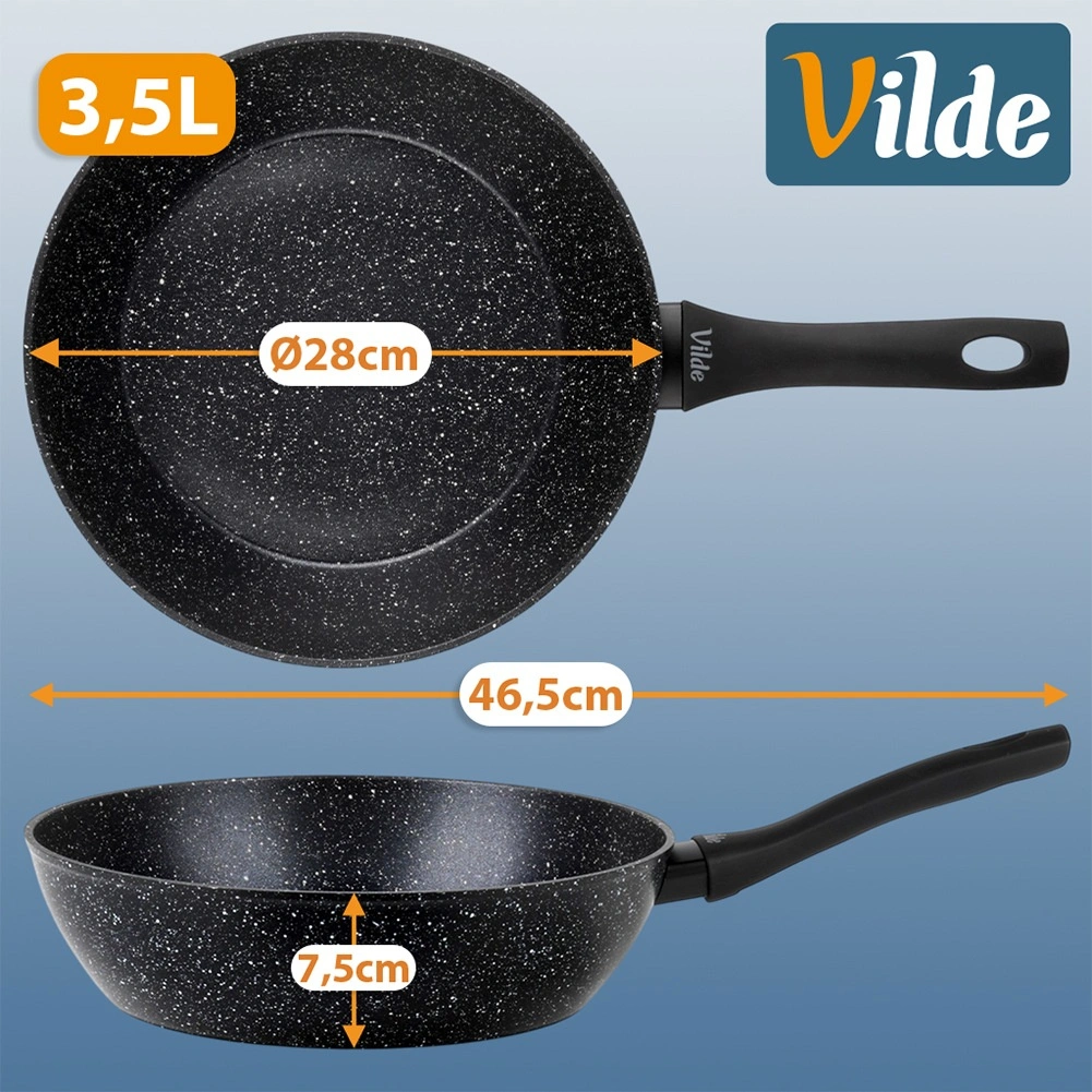 - Premer 28 cm, višina ponve 7,5 cm – dovolj prostora za družinske porcije.