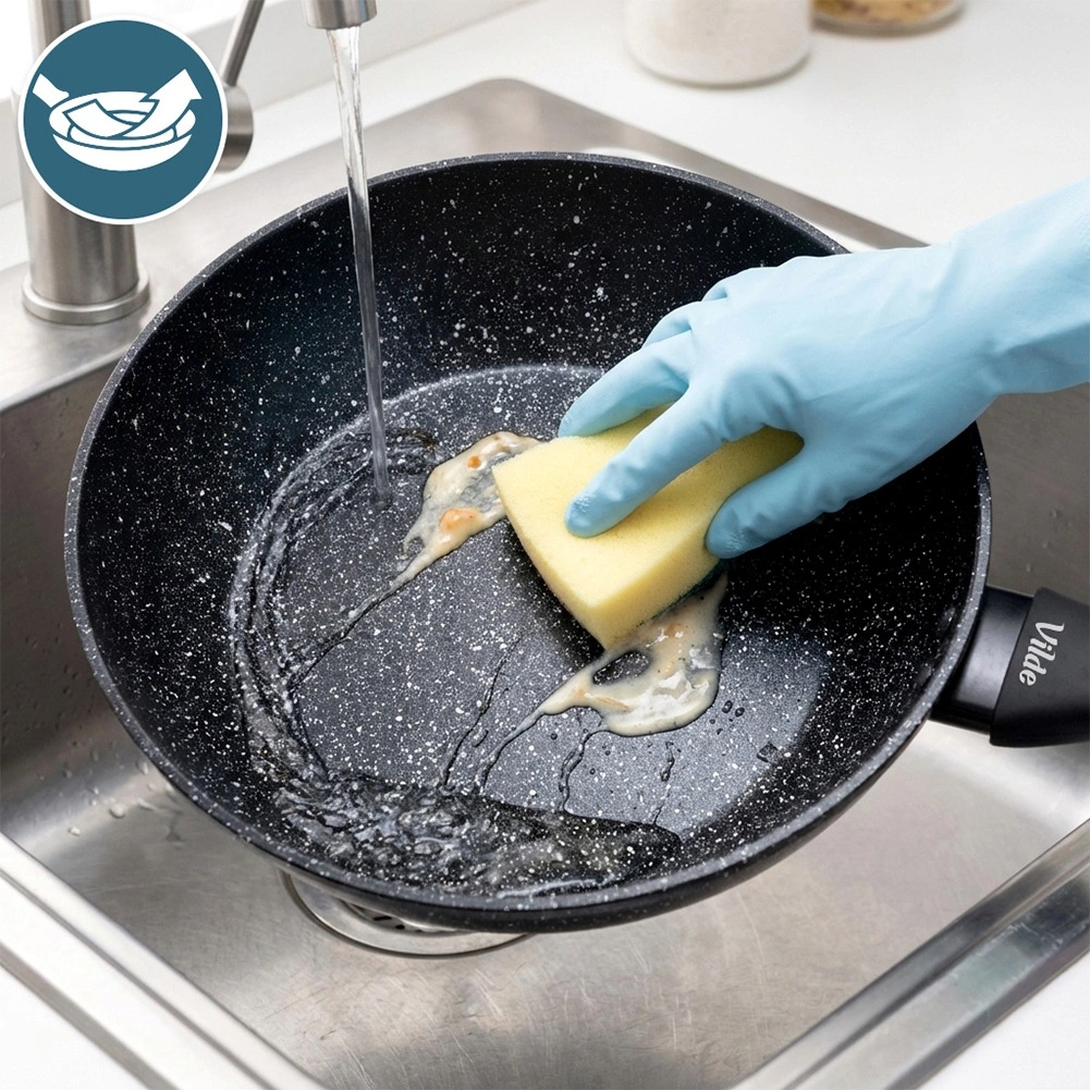 Jed se ne prijema in zlahka drsi po površini – pecite z malo olja in čistite brez drgnjenja.