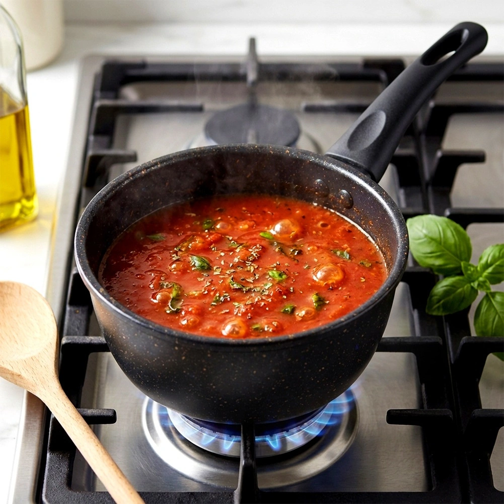 Dolga ergonomična ročica zagotavlja čvrst oprijem in varno prenašanje vroče posode pri pripravi omak in juh.
