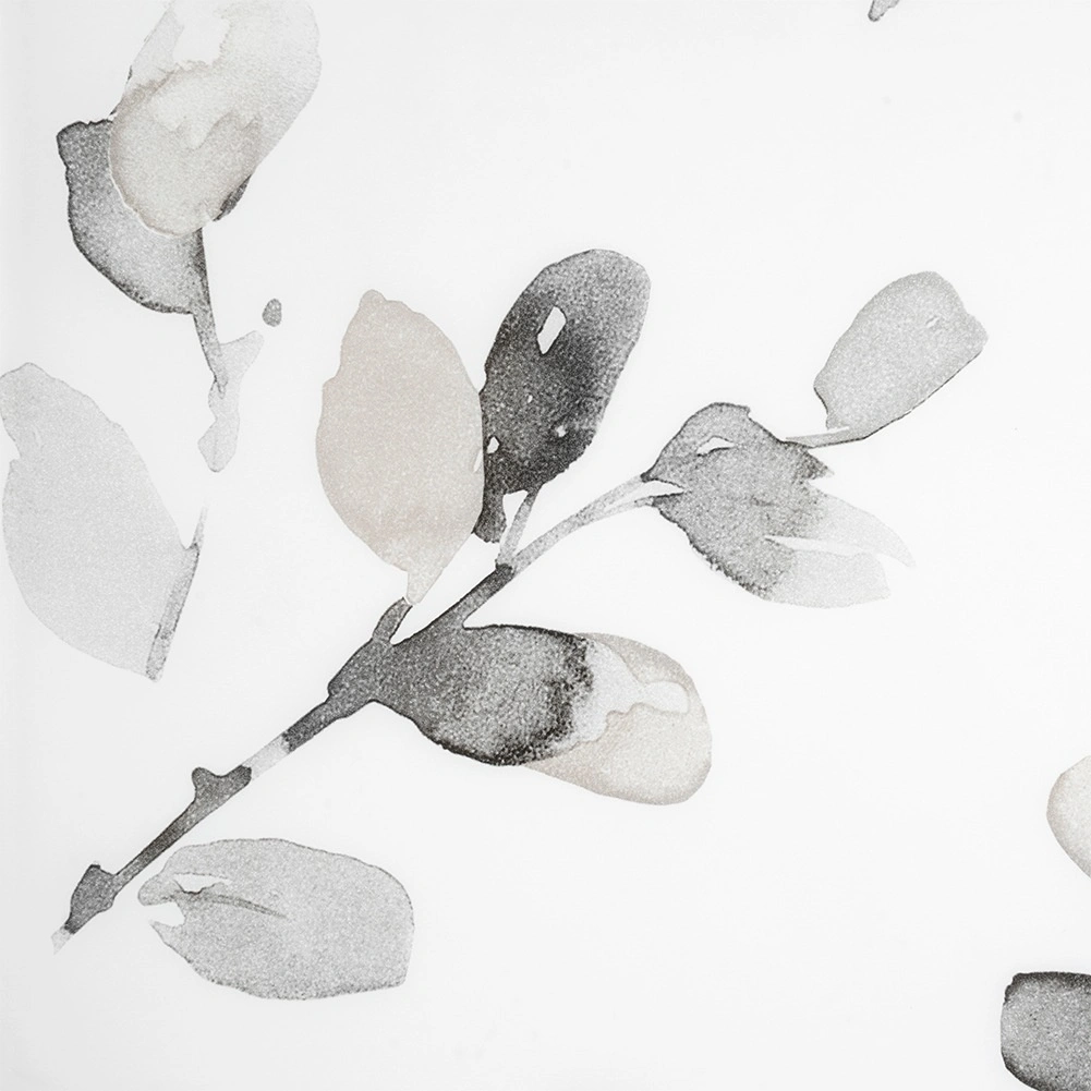 • Sodoben botanični vzorec – diskretni sivi listi na beli za čist videz.