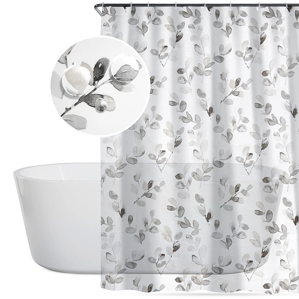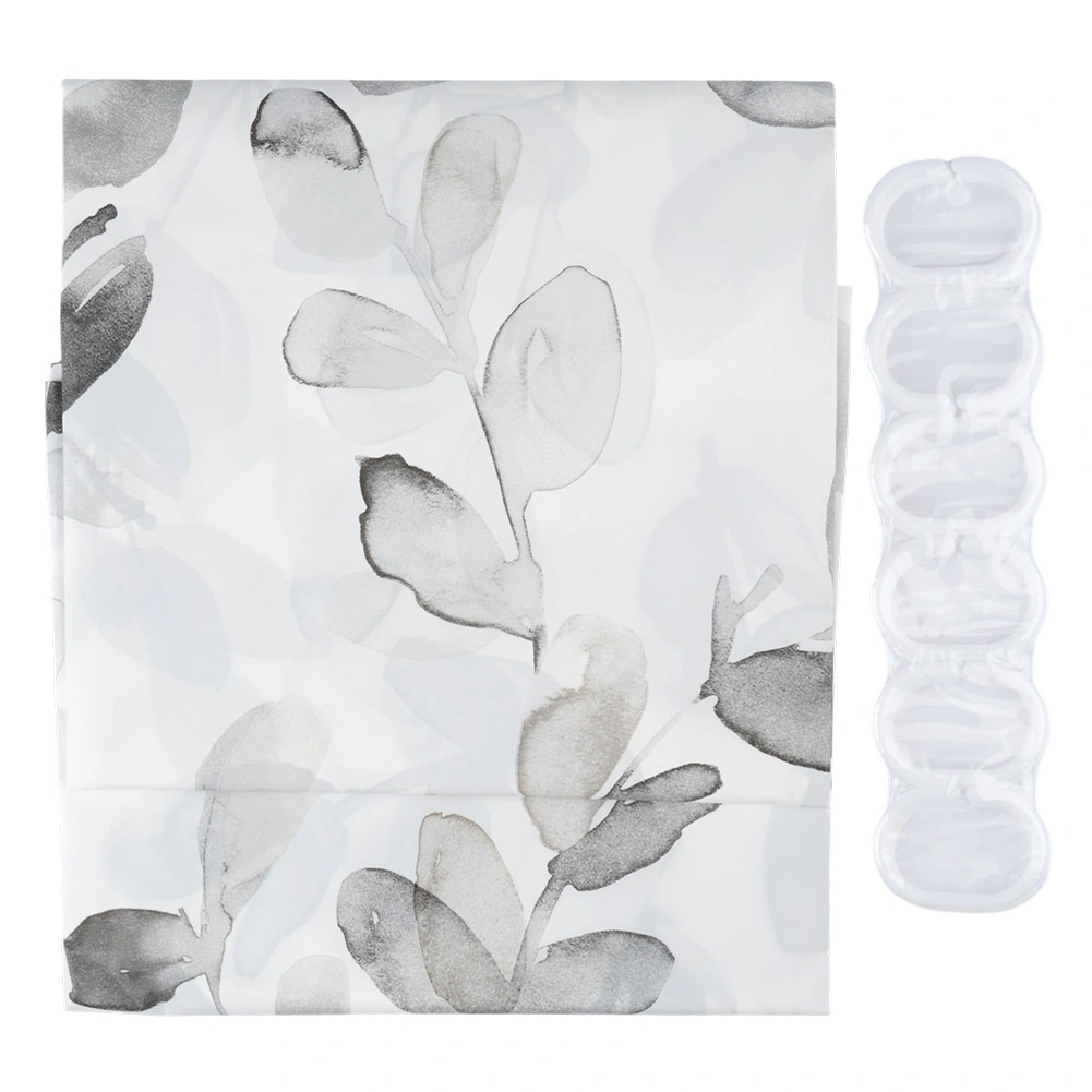 Vnesite v kopalnico mirno, naravno vzdušje. Bela zavesa s sivo‑sivimi listi združuje sodoben dizajn in praktično zaščito pred vodo. Zahvaljujoč materialu PEVA je vodoodporna, enostavna za čiščenje in prijazna do okolja.