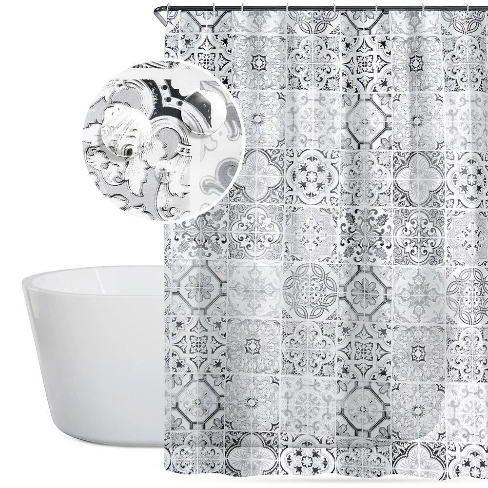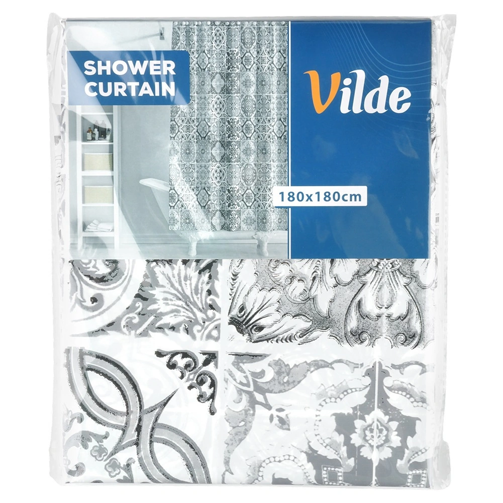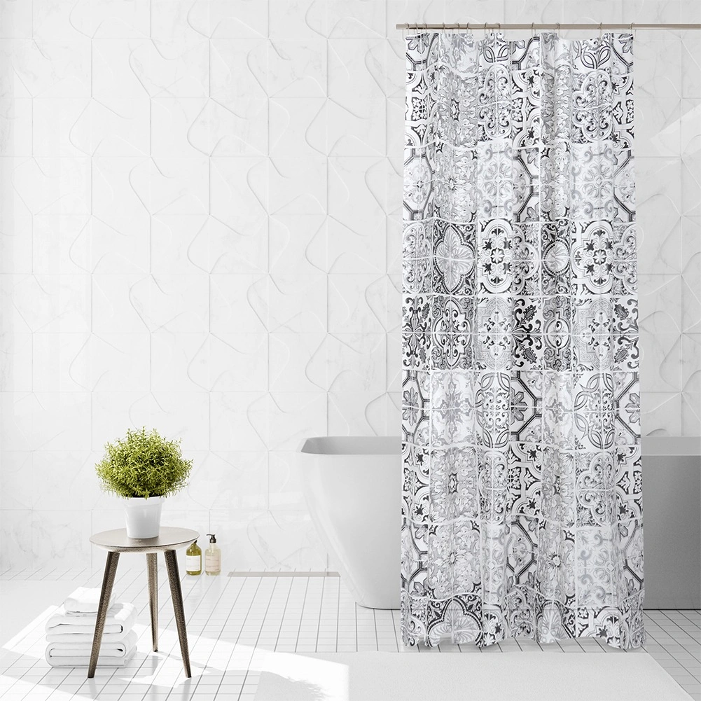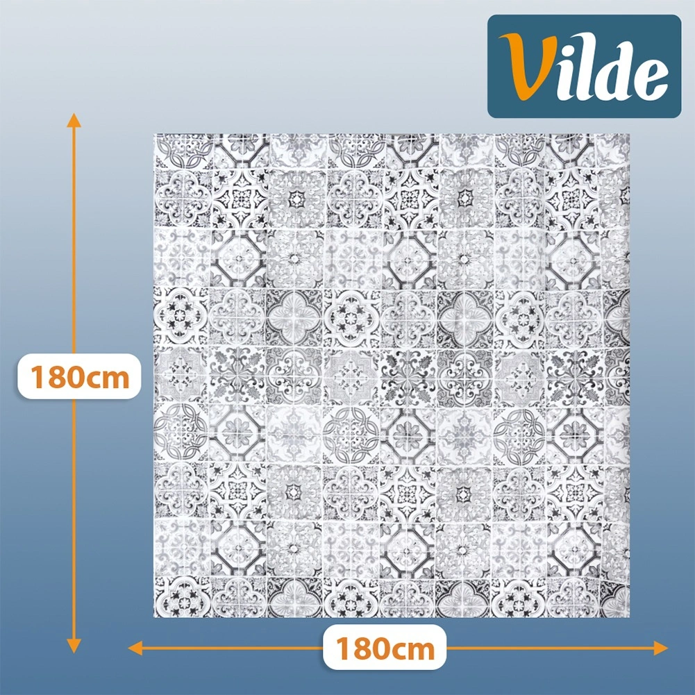 Stilski tuš zaves iz okolju prijaznega materiala PEVA v dimenzijah 180 × 180 cm z 12 kavlji v paketu. Zagotavlja zasebnost, učinkovito preprečuje škropljenje vode in se zaradi vodoodbojnega površja preprosto čisti. Modernejši sivo-beli vzorec, navdihnjen s ploščicami, doda vaši kopalnici eleganten videz.