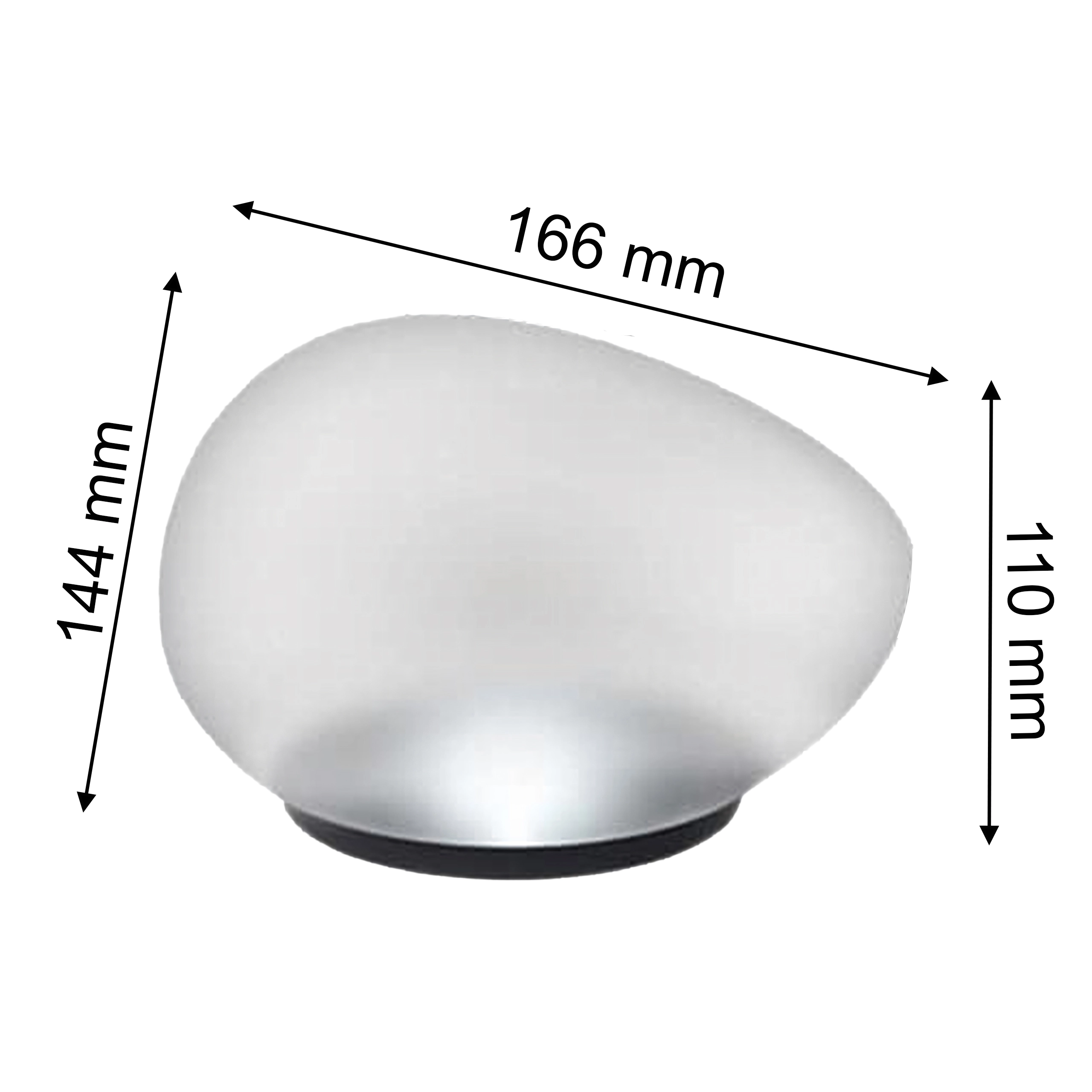Mat difuzor in zaobljena oblika ustvarjata nežno, enakomerno osvetlitev, ki se odlično poda v vsako vrtno kompozicijo.