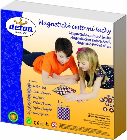 Detoa Magnetne potovalne šahovnice ponujajo odlično zabavo za vso družino. Komplet vsebuje kovinsko šahovnico velikosti 16,5 × 16,5 cm, ki zahvaljujoč magnetnemu podstavku zanesljivo drži figure na mestu. Tako vam ni treba skrbeti, da bi se figure med igro premikale.
