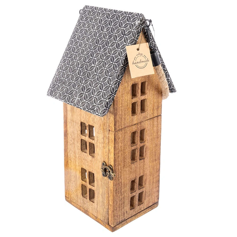Odkrijte edinstven lampijon v obliki hiške, ki ustvari toplo vzdušje v dnevni sobi, spalnici ali na pokriti terasi. Ročno izdelan iz mangovega lesa se ponaša z naravno strukturo in barvami, ki se odlično podajo tako k modernemu kot podeželskemu slogu. Kovinska streha in kakovostno okovje zagotavljata dolgo življenjsko dobo, LED sveča pa varen način uporabe brez dima in saj.