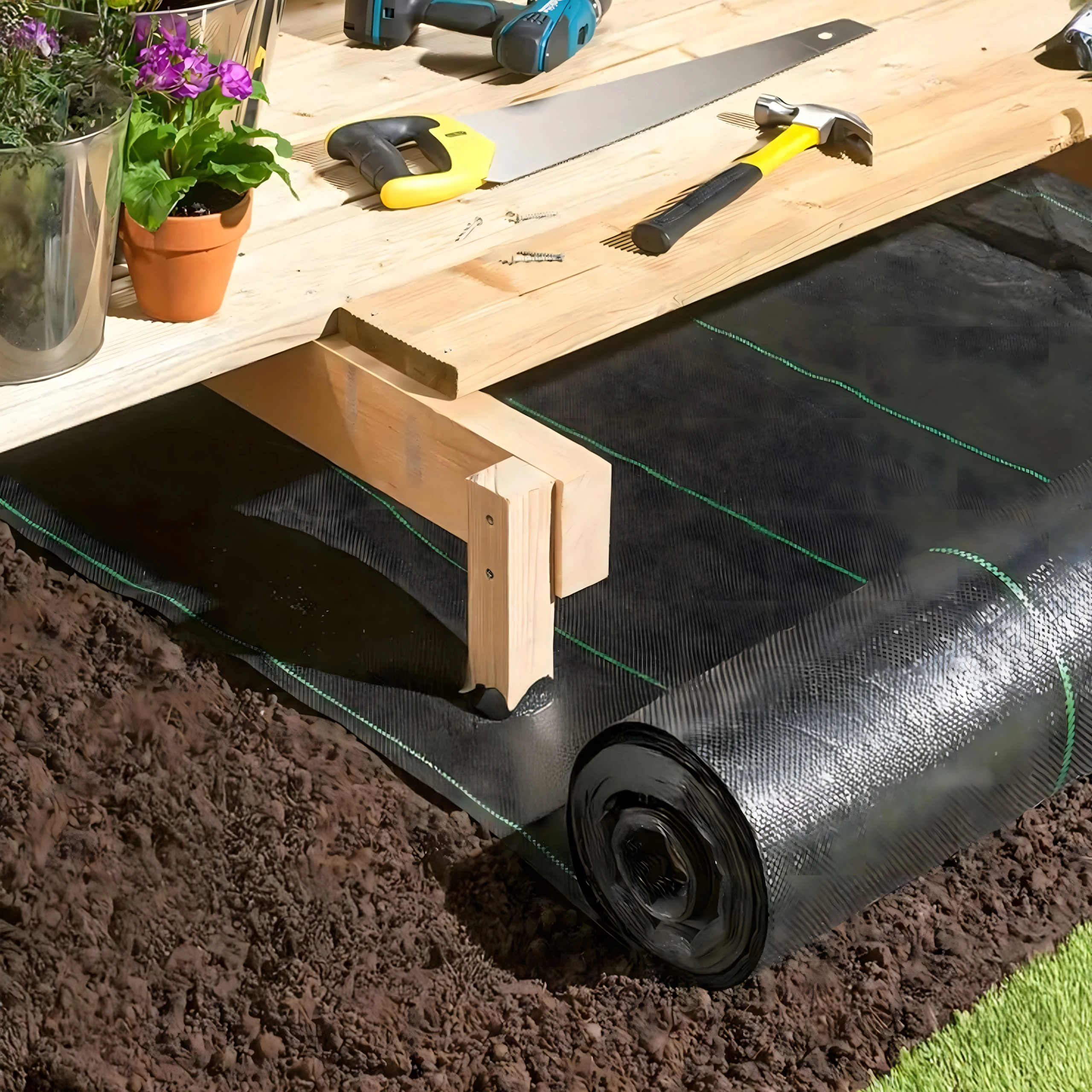 Vzdržljiva vrtna tkanina je odlična izbira za okrasne in zelenjavne grede, rastlinjake, potke ter pod tlakovce. Ustvari učinkovito pregrado proti plevelu, izboljša zadrževanje vlage in ohranja zemljo zračno. Praktične zelene vodilne črte olajšajo ravno rezanje in sajenje v vrstah.