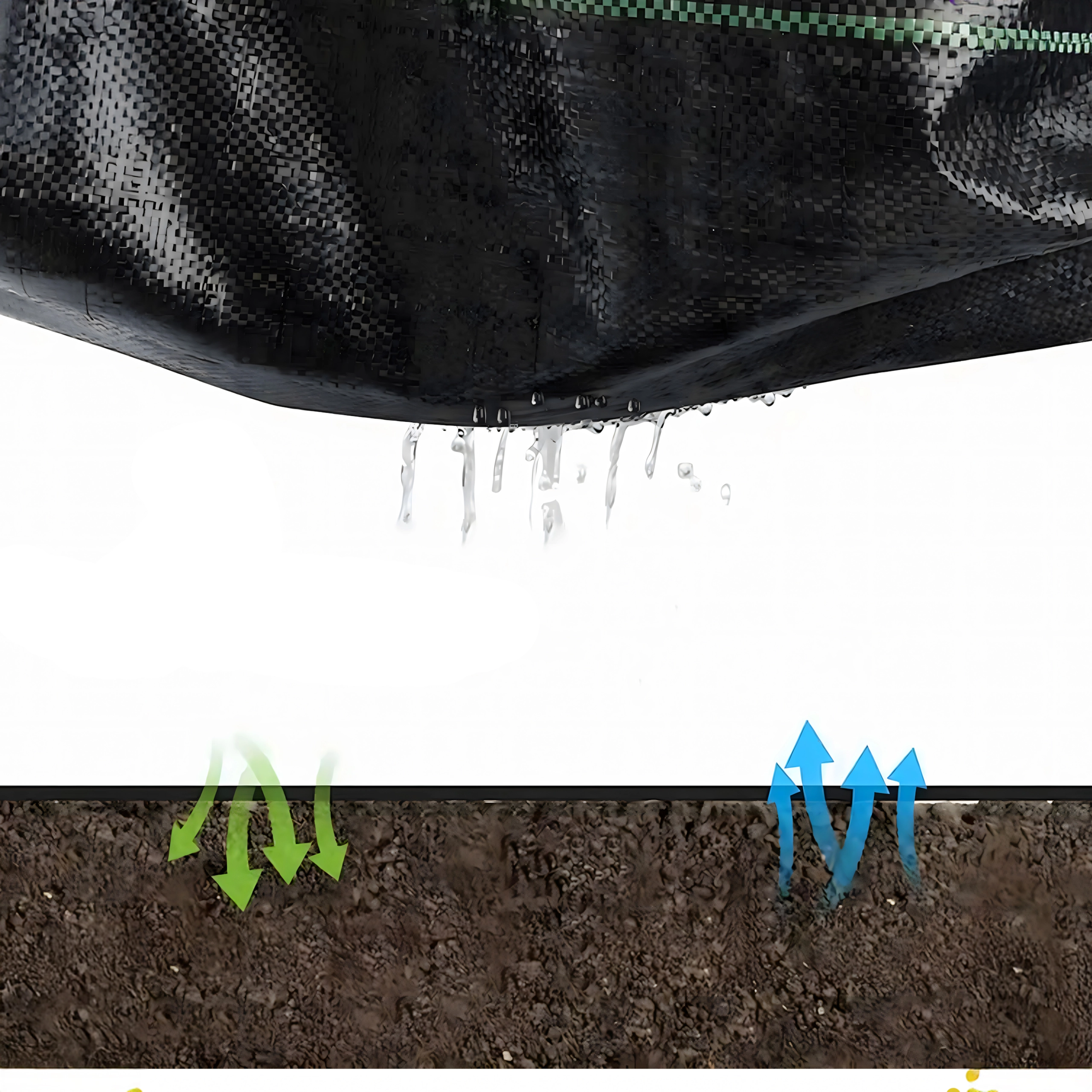 Material prepušča vodo in zrak – korenine dihajo, vlaga pa doseže rastline, kar podpira njihov zdrav razvoj.