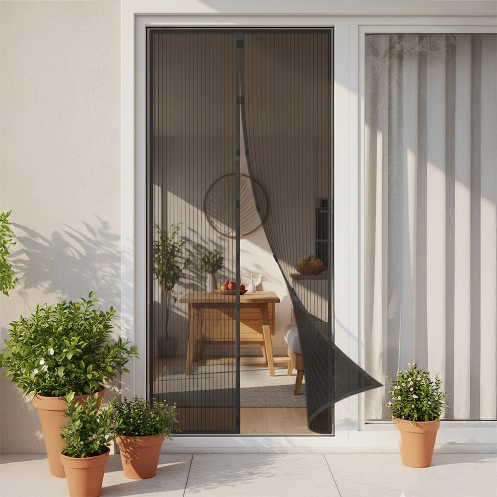 Uživajte v zračenju brez kompromisov. Vratna komarnica je sestavljena iz dveh panelov (vsak približno 50 cm), ki se na sredini zlahka in zanesljivo zapirata s pomočjo močnih magnetov. Vaš dom ščiti pred komarji in muhami, ne da bi ovirala pogled ali prehod svetlobe.
