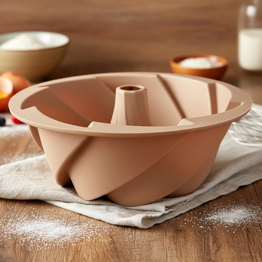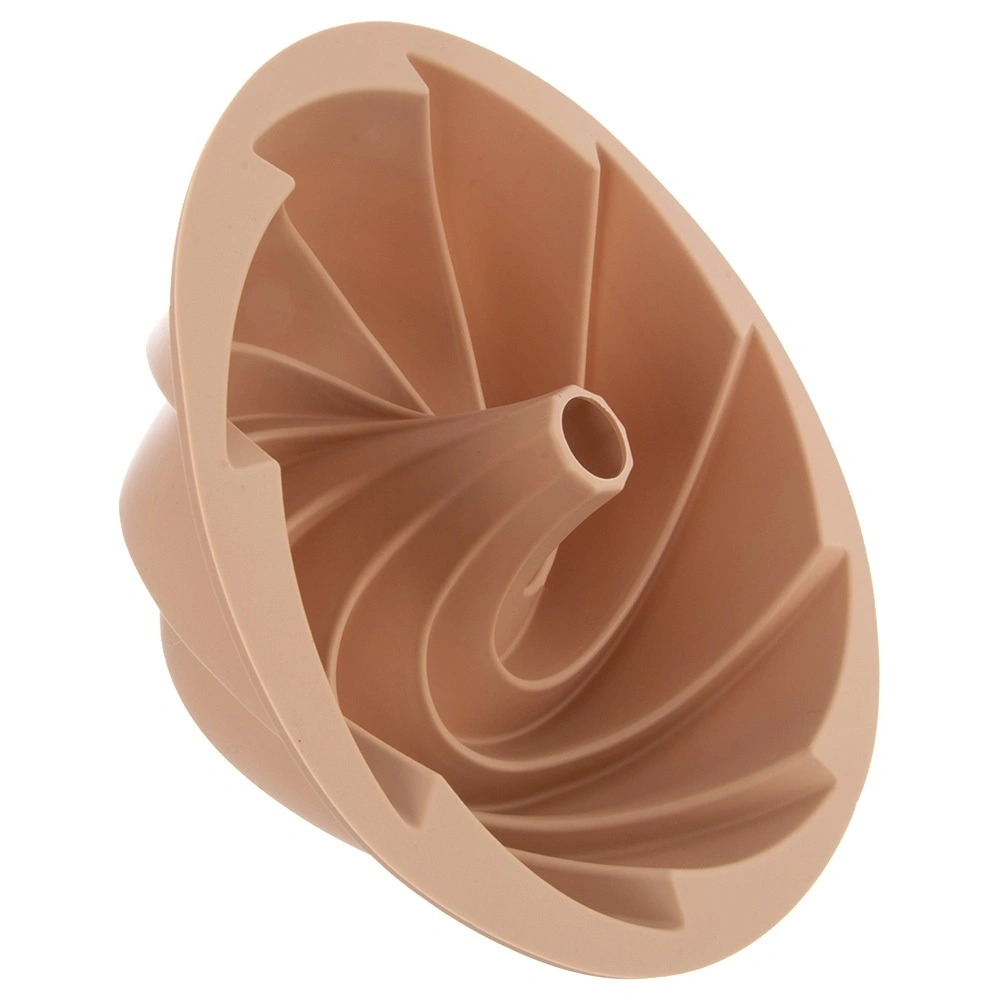 Ta bež silikonski pekač za šarkelj s sredinskim dimnikom je odlična izbira za ljubitelje domače peke. Zahvaljujoč kakovostnemu silikonu se testo ne prijema in šarkelj zlahka izstavljate brez potrebe po maščenju ali posipavanju. Spiralni relief doda vašemu pecivu učinkovit videz, ki zasije na vsaki mizi.
