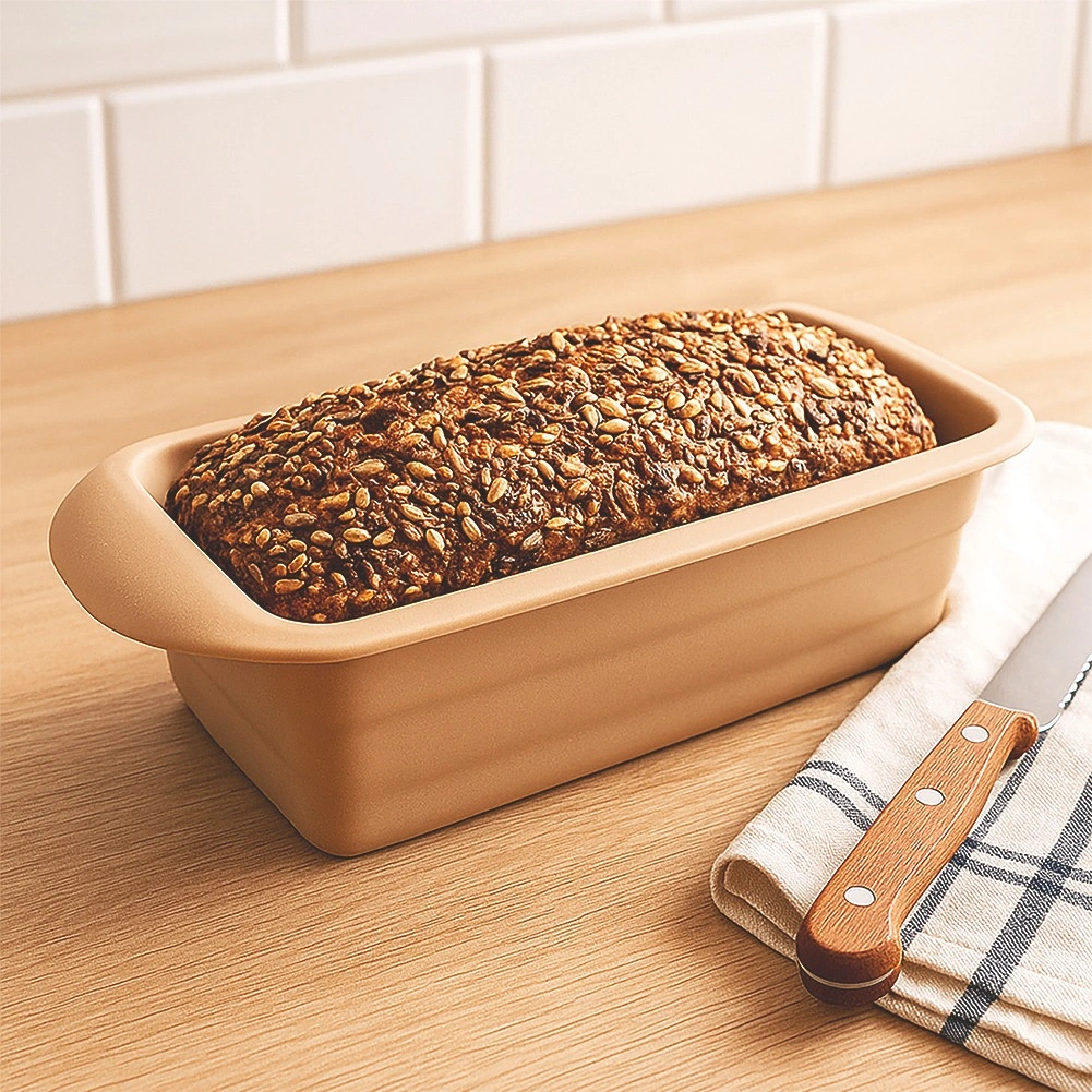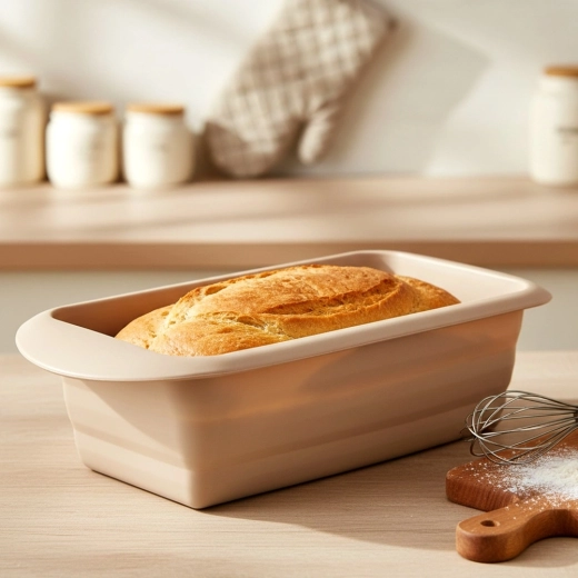Ta bež silikonski pekač je idealen za peko domačega kruha, šarkljev in kvašenih test, keksov ter paštet. Zahvaljujoč prožnemu in neprijemljivemu materialu se testo ne prijema, hlebec enostavno odstranite, pekač pa se preprosto čisti. Preverjena kakovost zagotavlja zanesljive rezultate pri vsaki peki.