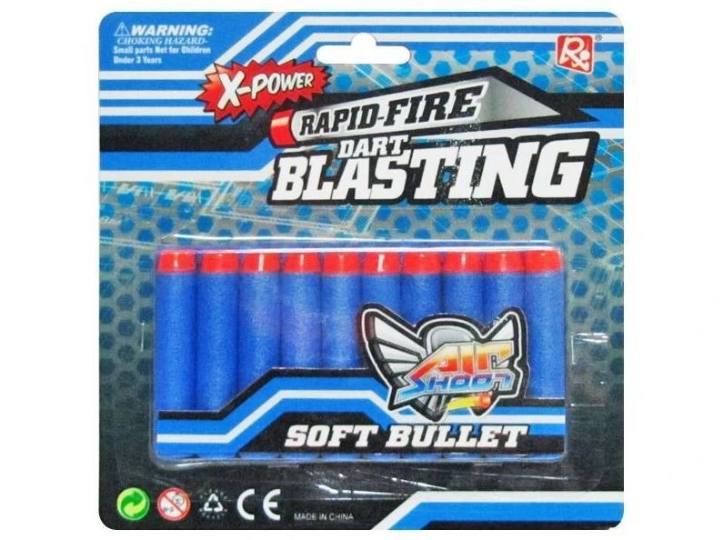 Nadomestni penaasti naboji za otroške pištole in puške s penastimi izstrelki prinašajo varno in zabavno igro. Mehak material je prijazen ter primeren za streljanje na tarče in akcijske igre s prijatelji. Paket vsebuje 10 kosov, pripravljenih za takojšnjo uporabo.