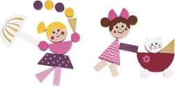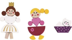 Barvni leseni deli z magnetom se zlahka zložijo v like, živalice in gradove. Otroci si ustvarijo lastne pravljice in prizore povsem po svoji domišljiji.