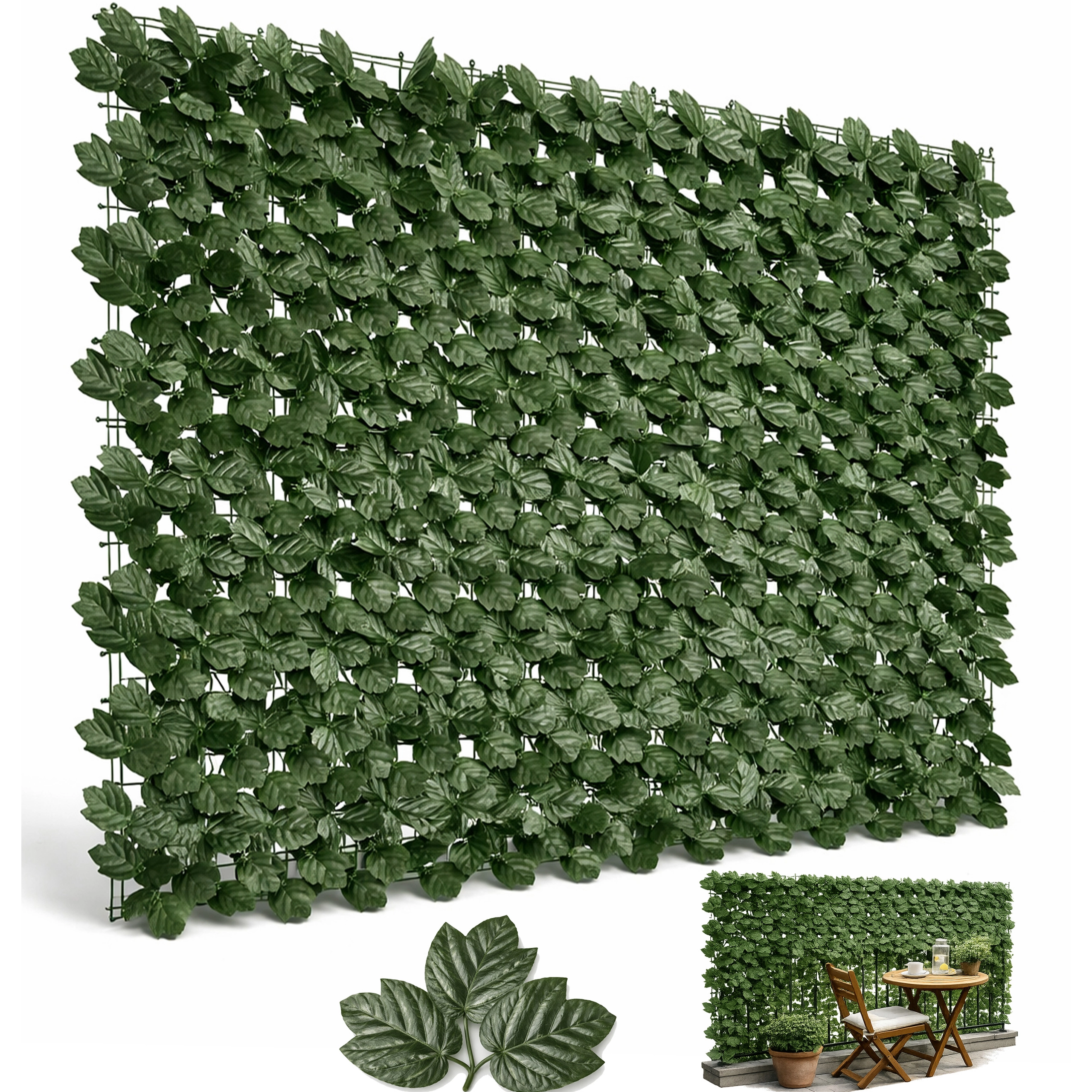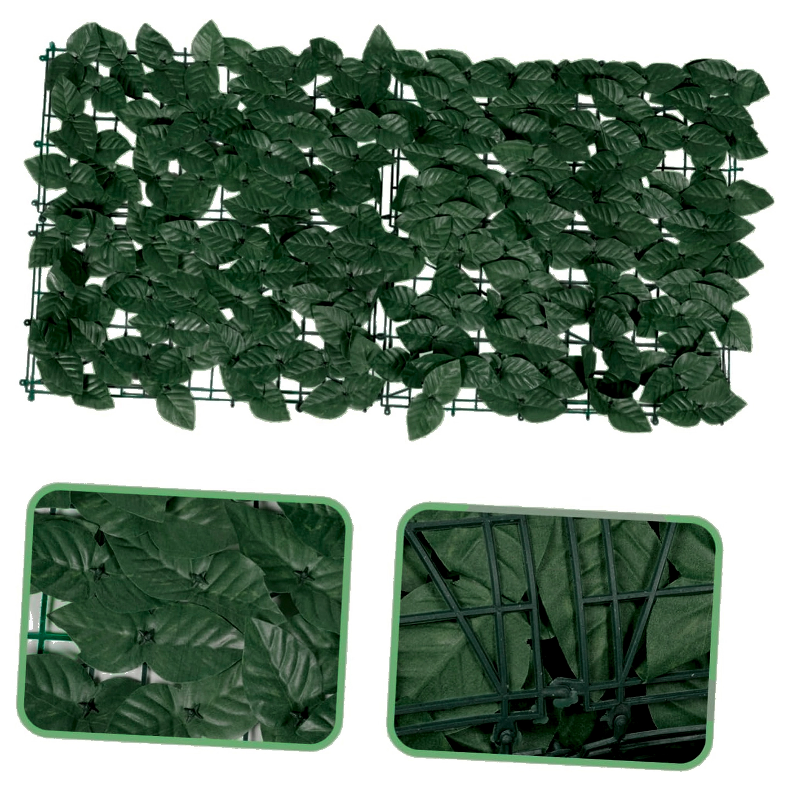 Umetna ograja z bršljanovimi listi je idealna rešitev za vse, ki želijo hitro in estetsko prekriti ograjo, pregrado ali steno. Gosto listje na trpežni plastični mreži prostoru doda naravno zelen videz, poveča zasebnost in zakrije neprivlačne površine. Material je lahek, prožen in se prilagodi različnim podlagam.