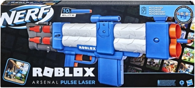 Potopite se v svet igre Roblox z blastrjem Nerf Roblox Arsenal: Pulse Laser! Ta blaster je navdihnjen z igro Roblox Arsenal in vam omogoča, da s priloženo kodo pridobite poseben virtualni predmet.