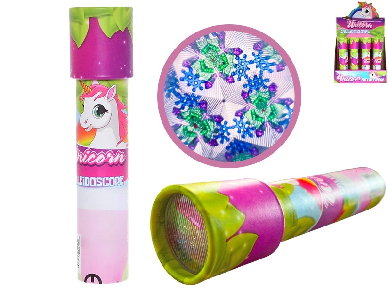 Odkrijte čar domišljije s tem prikupnim kalejdoskopom z motivom samoroga. Dovolj je, da pogledate skozi objektiv in vrtite tulec – pred očmi se bodo prikazovali nenehno spreminjajoči se barvni vzorci. Zahvaljujoč kompaktnim meram in vzdržljivi plastični izvedbi odlično sede tudi v majhne otroške roke. Primerno za otroke od 3 let, na voljo v štirih barvnih različicah.