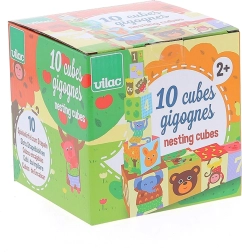 Ta barvit sestavljivi stolp znamke VILAC vsebuje 10 trdnih kartonskih kock z oštevilčenimi ploskvami in ilustracijami živali. Otroci lahko kocke zlagajo v visok stolp ali jih vstavljajo eno v drugo, s čimer naravno urijo štetje, razločevanje velikosti in ravnotežje.