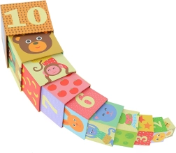 Vsaka kocka nosi številke 1–10, barve in motive živali. Otroci si na igriv način osvojijo štetje ter prepoznavanje oblik in vzorcev.