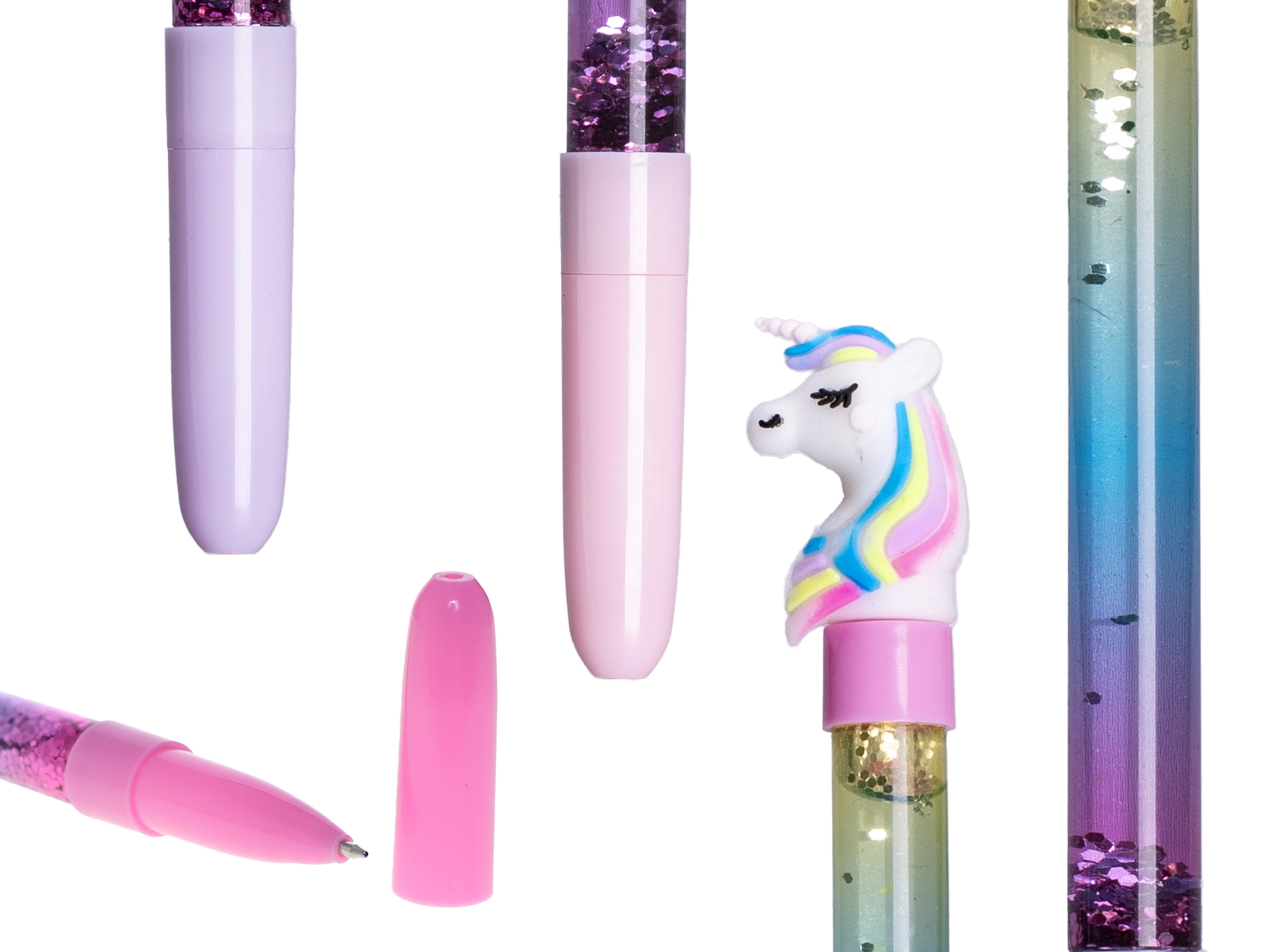 Ta modni kemični svinčnik z ljubkim samorogom spremeni vsako pisanje v zabavo. Zaradi prozornega ohišja, napolnjenega s tekočino z bleščicami, pri vsakem gibu peresa nastane očarljiv bleščeč učinek. Svinčnik udobno leži v roki in je idealen za šolo, zapiske ali kot majhno darilo.