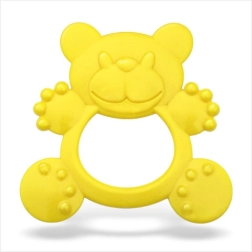 Rumeno silikonsko grizalo z obročkom je enostavno za držanje in idealno za nežno grizenje ter igro.