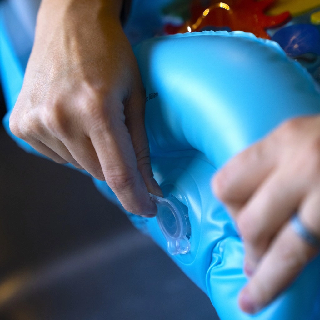 Praktičen zamašek omogoča hitro napolnitev in izpust vode ter zanesljivo zapiranje, da je igra vedno udobna in čista.