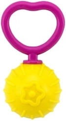 Ergonomski ročaj omogoča dojenčku čvrst in udoben oprijem, spodbuja koordinacijo oko–roka ter prve poskuse samostojnega držanja.