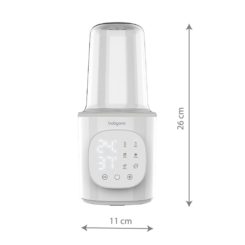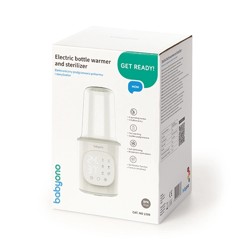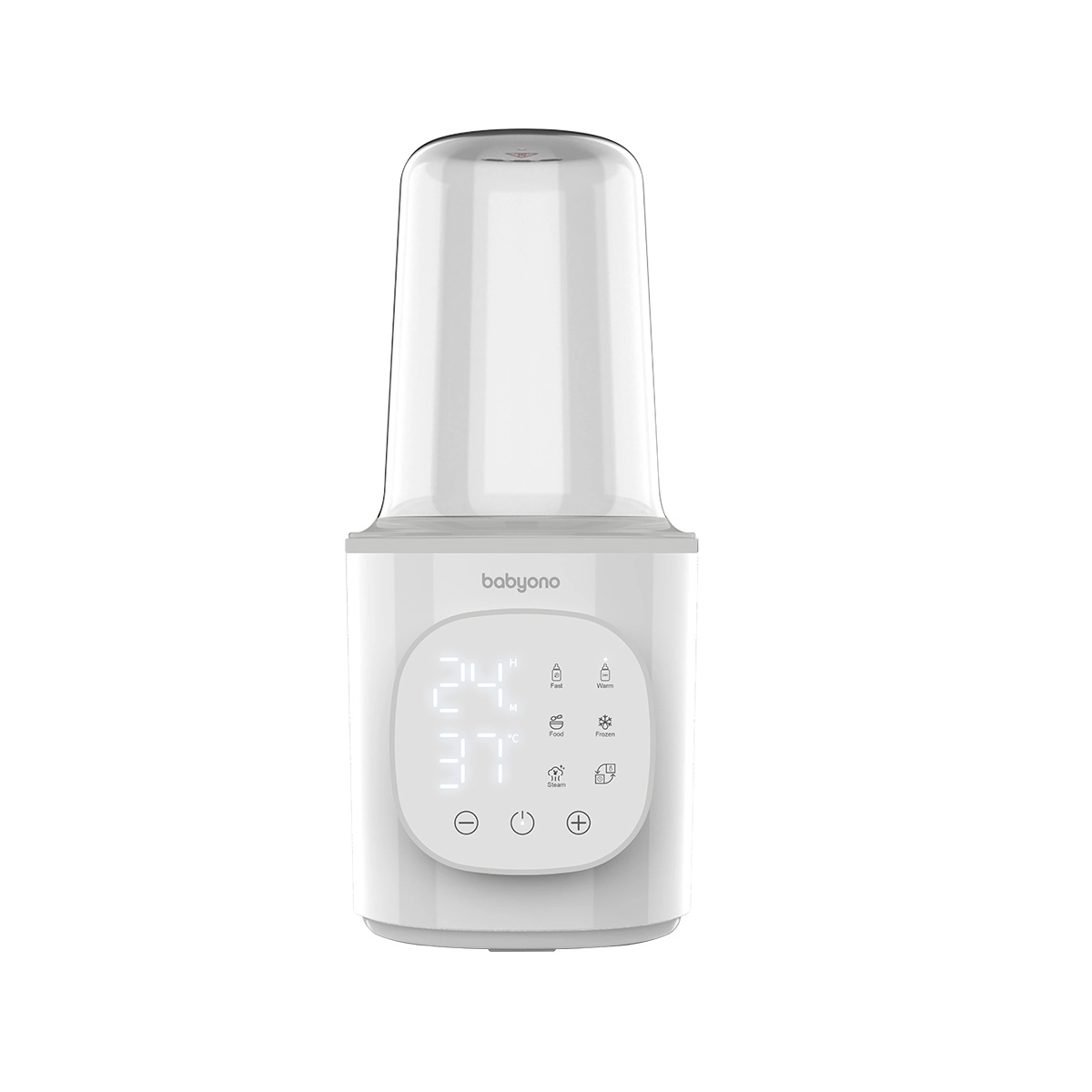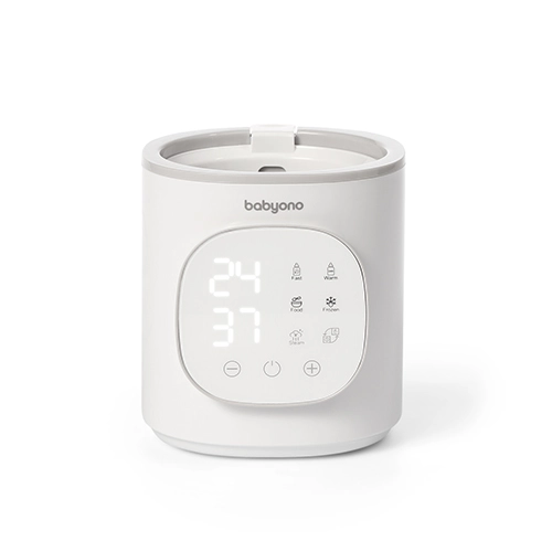 BabyOno 6v1 je večfunkcijski grelnik in sterilizator, ki obvlada hiter grelni cikel mleka, ohranjanje temperature, gretje obrokov v kozarčkih, varno odtajevanje in parno sterilizacijo. Zahvaljujoč 200 W moči in natančnemu uravnavanju temperature segreva enakomerno in udobno – za večino vrst otroških stekleničk in posod.