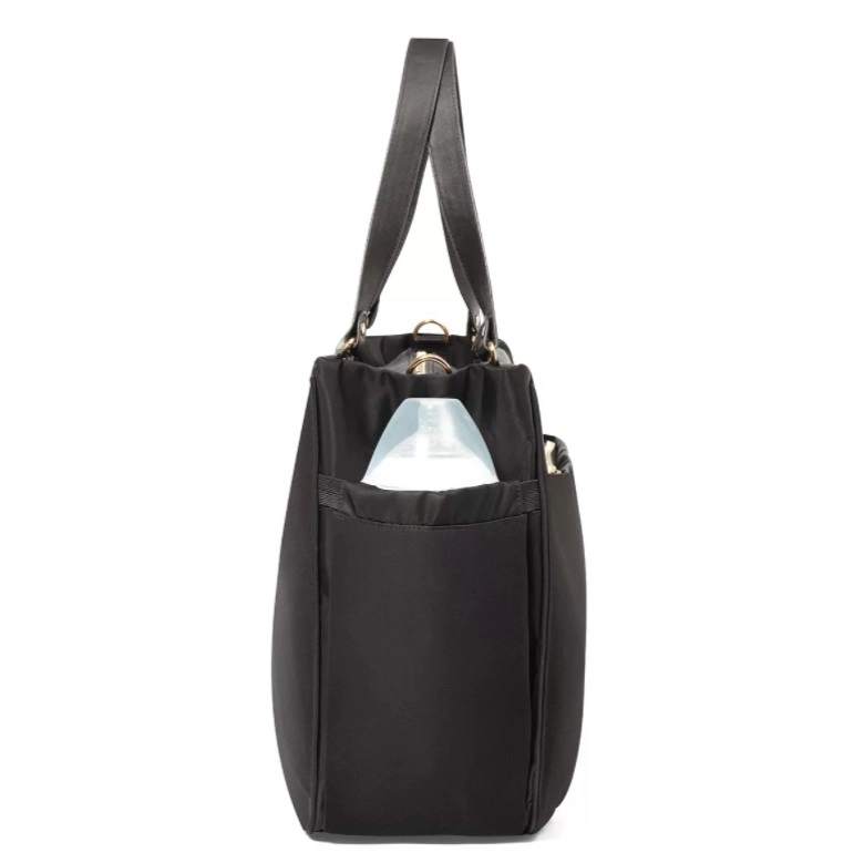 Stilska in praktična previjalna torba BabyOno Coco v črni barvi združuje mestni dizajn s premišljeno organizacijo. Ponuja 11 žepov vključno z izolirnim žepom za ohranjanje temperature hrane, zunanjimi stranskimi žepi za stekleničke, hitro dostopnim žepom na zadrgo za telefon in vrvico za ključe. Zahvaljujoč čvrsti in enostavno čistljivi tkanini, snemljivemu ramenskemu pasu ter možnosti pritrditve na voziček je idealna za vsakodnevno uporabo v mestu.