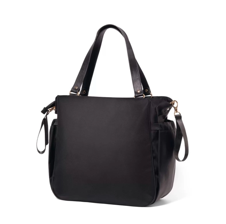 Čvrst in odporen material z gladko površino se enostavno čisti ter kljubuje zahtevam vsakodnevne uporabe in spreminjajočim se vremenskim razmeram. Udobna ročaja, snemljiv ramenski pas in stranska pasova za pritrditev na voziček zagotavljajo največjo prilagodljivost pri nošenju. Priložena je tudi praktična previjalna podloga za udobno nego na poti.