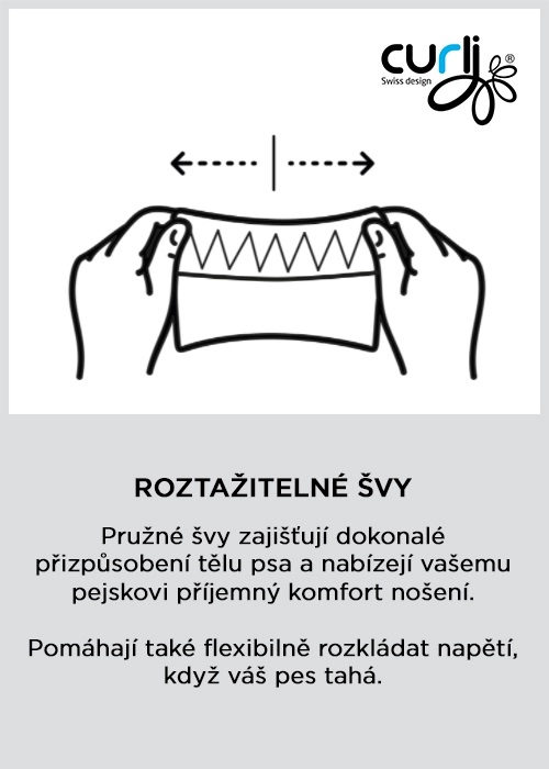 Anatomsko oblikovano področje vratu in elastični šivi porazdelijo vlečno silo preko prsnega koša, ščitijo občutljivo področje vratu in ne omejujejo naravnega gibanja psa.