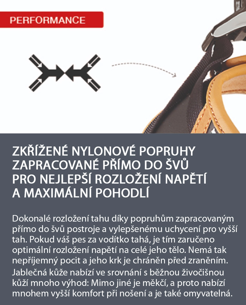 Perforirana struktura jabolčnega usnja povečuje kroženje zraka, zmanjšuje pregrevanje in ščiti občutljivo kožo psa. Nežna površina je prijetna tudi pri daljšem nošenju.