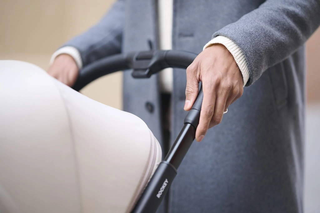 Rockey L je največji iz družine ROCKEY: ima velika kolesa za stabilno vožnjo po mestu in parku, prostoren sedež z ležečim položajem in koš z nosilnostjo 7 kg. Zahvaljujoč samodejnemu zlaganju in razpiranju ga v hipu zložite in znova pripravite na vožnjo. Premium, na dotik prijetne tkanine iz recikliranih materialov v brezčasni barvi Smooth Grey se popolno ujemajo s črnim ogrodjem.